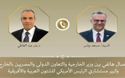 تلقى د. بدر عبد العاطي وزير الخارجية والتعاون الدولي والمصريين بالخارج يوم الجمعة ٢٠ مارس اتصالاً هاتفياً من السيد “مسعد بولس” كبير مستشاري الرئيس الأمريكي للشئون العربية والأفريقية، وذلك...