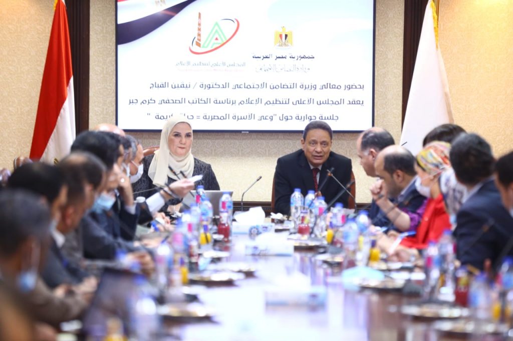 نظم المجلس الأعلى لتنظيم الإعلام، برئاسة الكاتب الصحفي كرم جبر، جلسة جوارية مفتوحة بحضور وزيرة التضامن الاجتماعي نيفين القباج وبحضور نخبة من كبار الكتاب الصحفيين والإعلاميين.