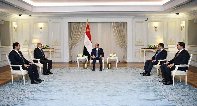 جاء ذلك خلال استقبال الرئيس عبد الفتاح السيسي، اليوم /الاثنين/ بمدينة العلمين، المشير خليفة حفتر القائد العام للجيش الوطني الليبي، وذلك بحضور الفريق خالد حفتر رئيس أركان القوات الأمنية، والفريق صدام حفتر رئيس أركان القوات البرية، واللواء حسن رشاد رئيس المخابرات العامة.
