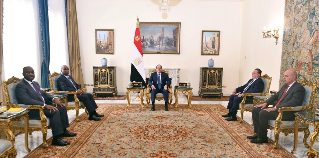 جاء ذلك خلال استقبال السيد الرئيس عبد الفتاح السيسي، اليوم الأحد بقصر الاتحادية، كلا من الدكتور بنديكت أوراما رئيس بنك التصدير والاستيراد الإفريقي، المقرر أن تنتهي ولايته في أكتوبر 2025، والدكتور/ جورج إلومبي الرئيس المرتقب للبنك، الذي سيتولى رئاسة البنك لفترة تمتد حتى عام 2030، وذلك بحضور حسن عبد الله محافظ البنك المركزي المصري.