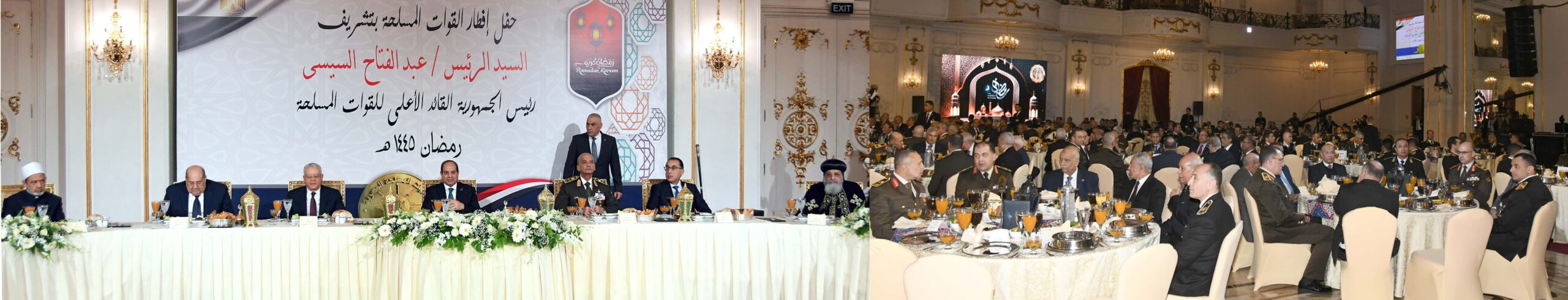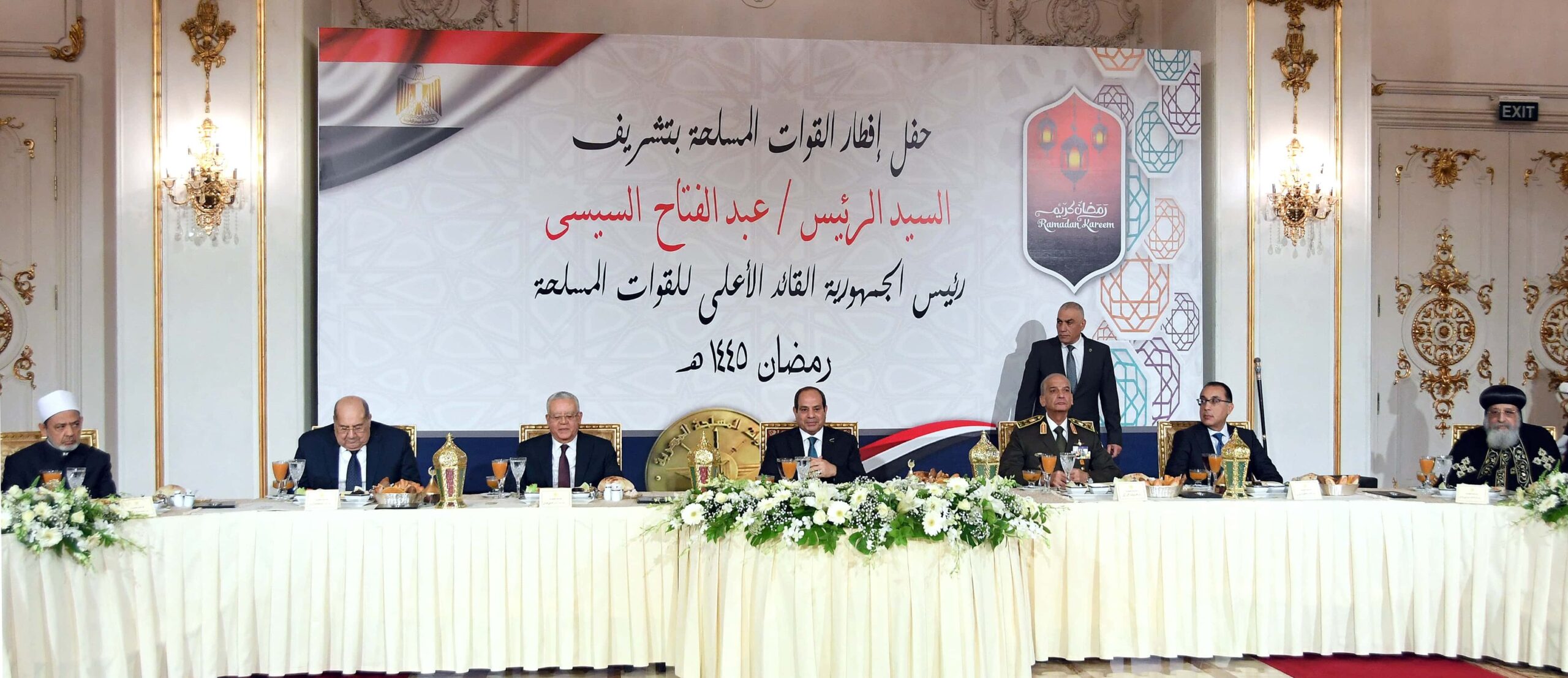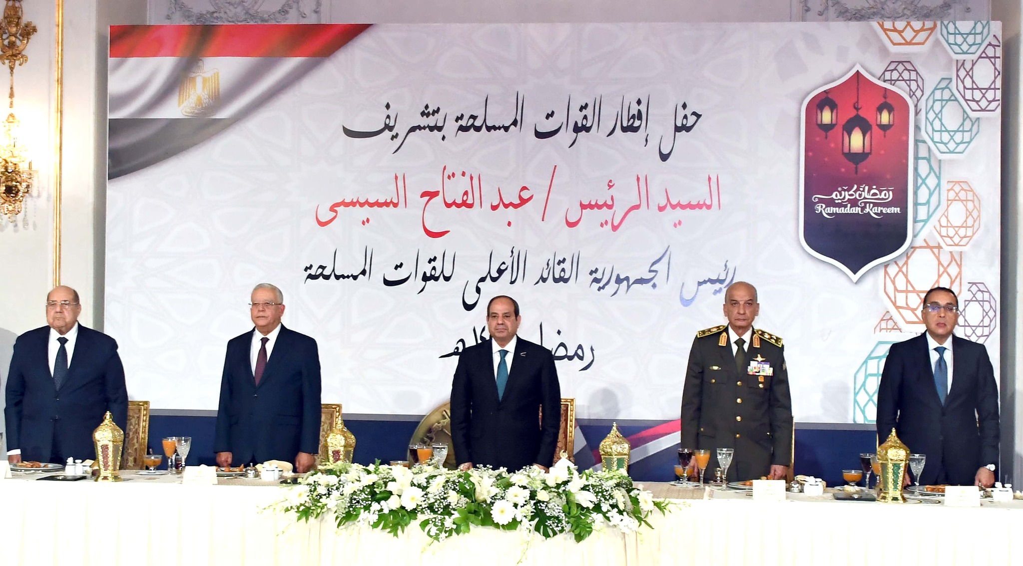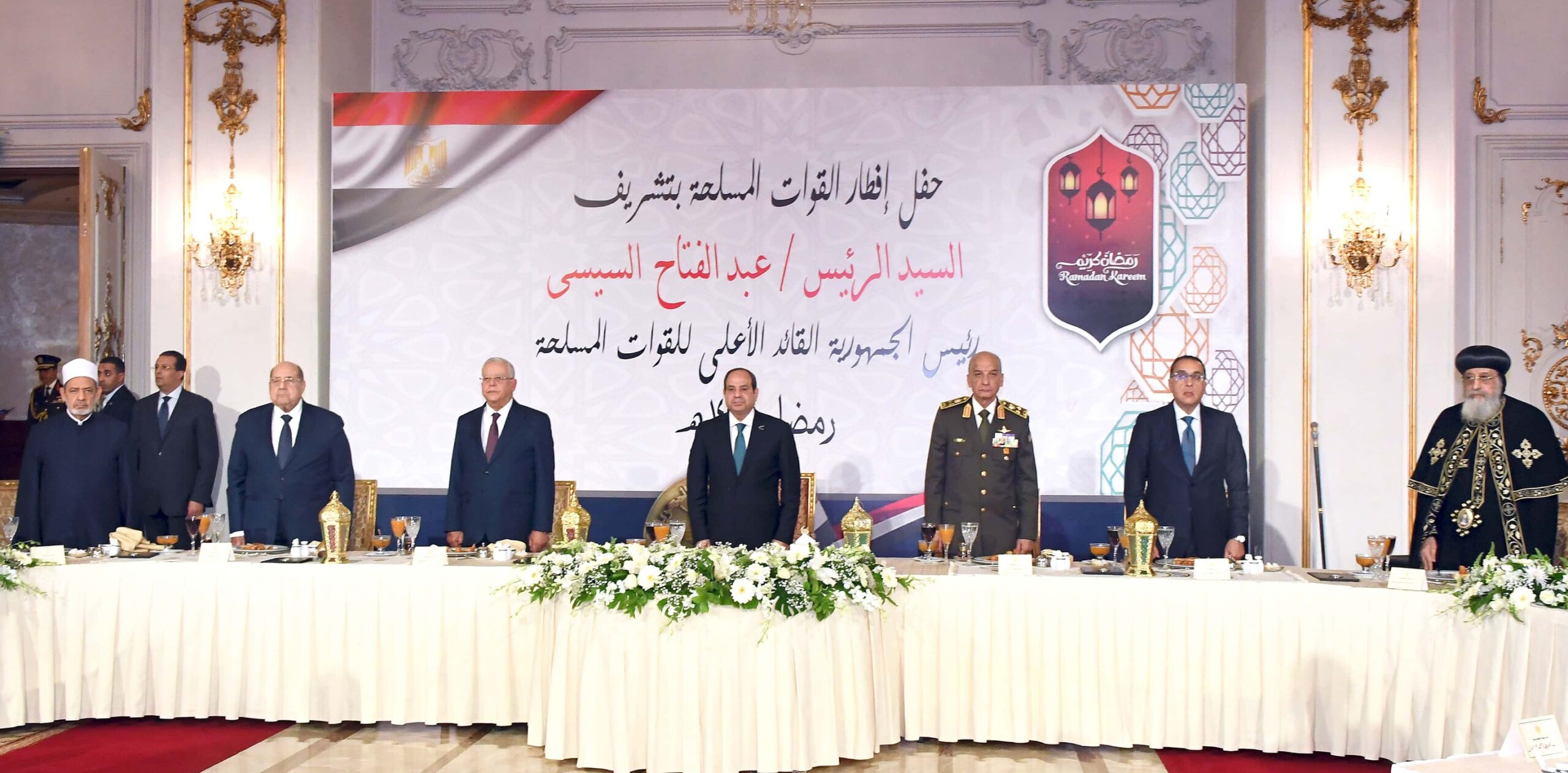 حضر احتفالية الإفطار: المستشار حنفى جبالي رئيس مجلس النواب والمستشار عبد الوهاب عبد الرازق رئيس مجلس الشيوخ، والدكتور مصطفى مدبولي رئيس مجلس الوزراء والإمام الأكبر الدكتور أحمد الطيب شيخ الأزهر الشريف والبابا تواضروس الثاني بابا الإسكندرية بطريرك الكرازة المرقسية والفريق أول محمد زكي القائد العام للقوات المسلحة وزير الدفاع والإنتاج الحربي، والفريق أسامة عسكر رئيس أركان حرب القوات المسلحة وعدد من الوزراء والمحافظين وقادة الأفرع الرئيسية وقادة القوات المسلحة والشرطة المدنية ولفيف من كبار رجال الدولة وقدامى قادة القوات المسلحة.