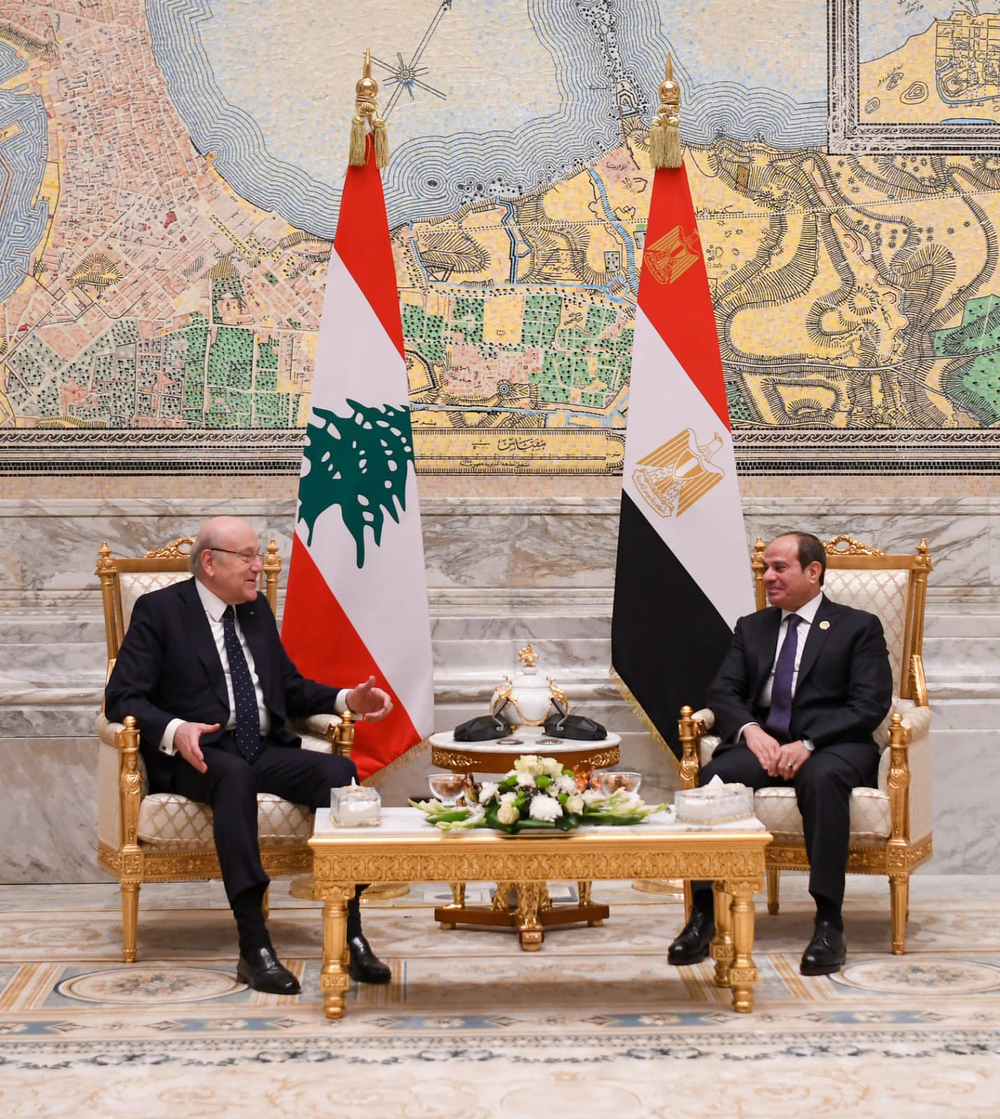 وصرح المتحدث الرسمي باسم رئاسة الجمهورية السفير محمد الشناوي بأن اللقاء شهد تأكيد الرئيس على وحدة لبنان وسيادته وسلامة أراضيه، مشيراً إلى حرصنا على تثبيت العمل باتفاق وقف إطلاق النار في لبنان، وتنفيذ قرار مجلس الأمن رقم ۱۷۰۱ بشكل كامل، ومؤكداً على ضرورة تقديم الدعم للجيش اللبناني، لتمكينه من أداء مهامه في تعزيز الاستقرار بلبنان الشقيق، وبما يدعم الاستقرار في المنطقة.