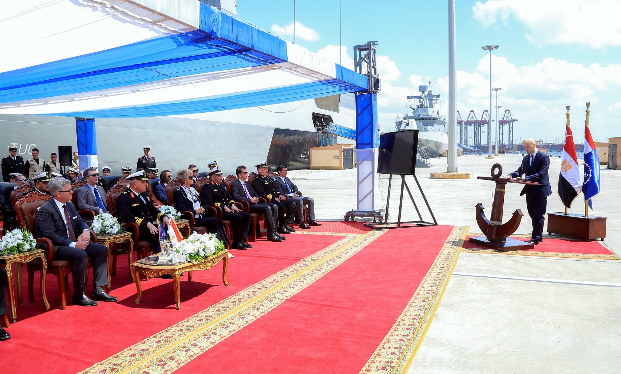 وخلال مراسم التسليم، ألقى اللواء بحري أح محمود فوزي رئيس أركان القوات البحرية كلمة أشار خلالها إلى أن استلام هذه اللنشات يأتي تأكيداً لعلاقات التعاون والشراكة الإستراتيجية بين مصر والاتحاد الأوروبي والمنظمة الدولية للهجرة، مشدداً على حرص القوات المسلحة على دعم قدرات الأسطول البحري المصري لتعزيز الأمن والاستقرار في مناطق عمل القوات البحرية .