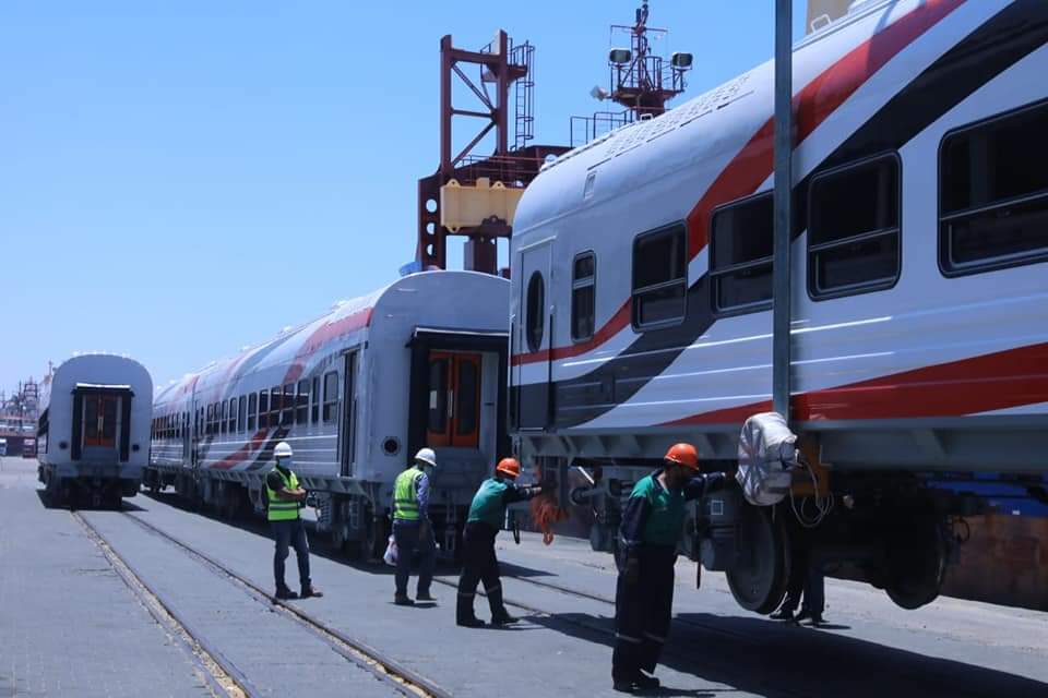 بالصور .. وزير النقل يعلن وصول دفعة جديدة من عربات ركاب السكك الحديدية إلى ميناء الإسكندرية