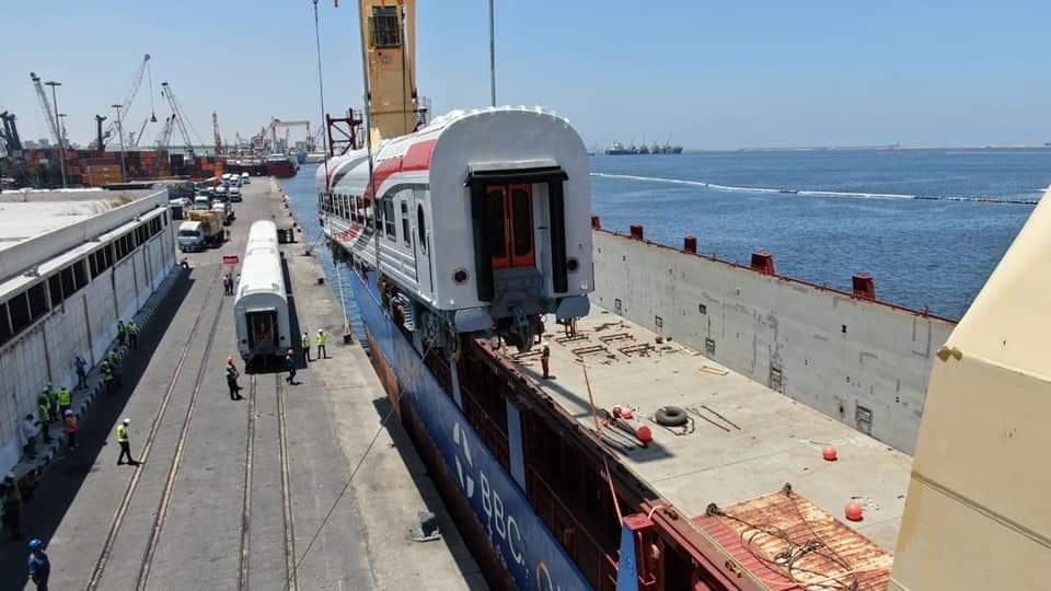 أعلن وزير النقل المهندس كامل الوزير وصول دفعة جديدة من عربات ركاب السكك الحديدية الجديدة بإجمالي ١٠ عربات إلى ميناء الإسكندرية.