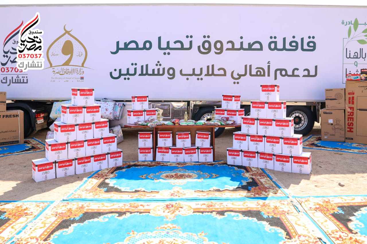 وزّع الدكتور أسامة الأزهري، وزير الأوقاف، اليوم الجمعة، قافلة الخير التي قدمها صندوق “تحيا مصر” لأهالي مدينتي حلايب وشلاتين، وضمت المساعدات التي تم تقديمها 15 شاحنة، تشمل 10 آلاف كرتونة مواد غذائية، و10 آلاف لحاف، و5 آلاف قطعة ملابس، إضافة إلى 25 جهاز عروسة.