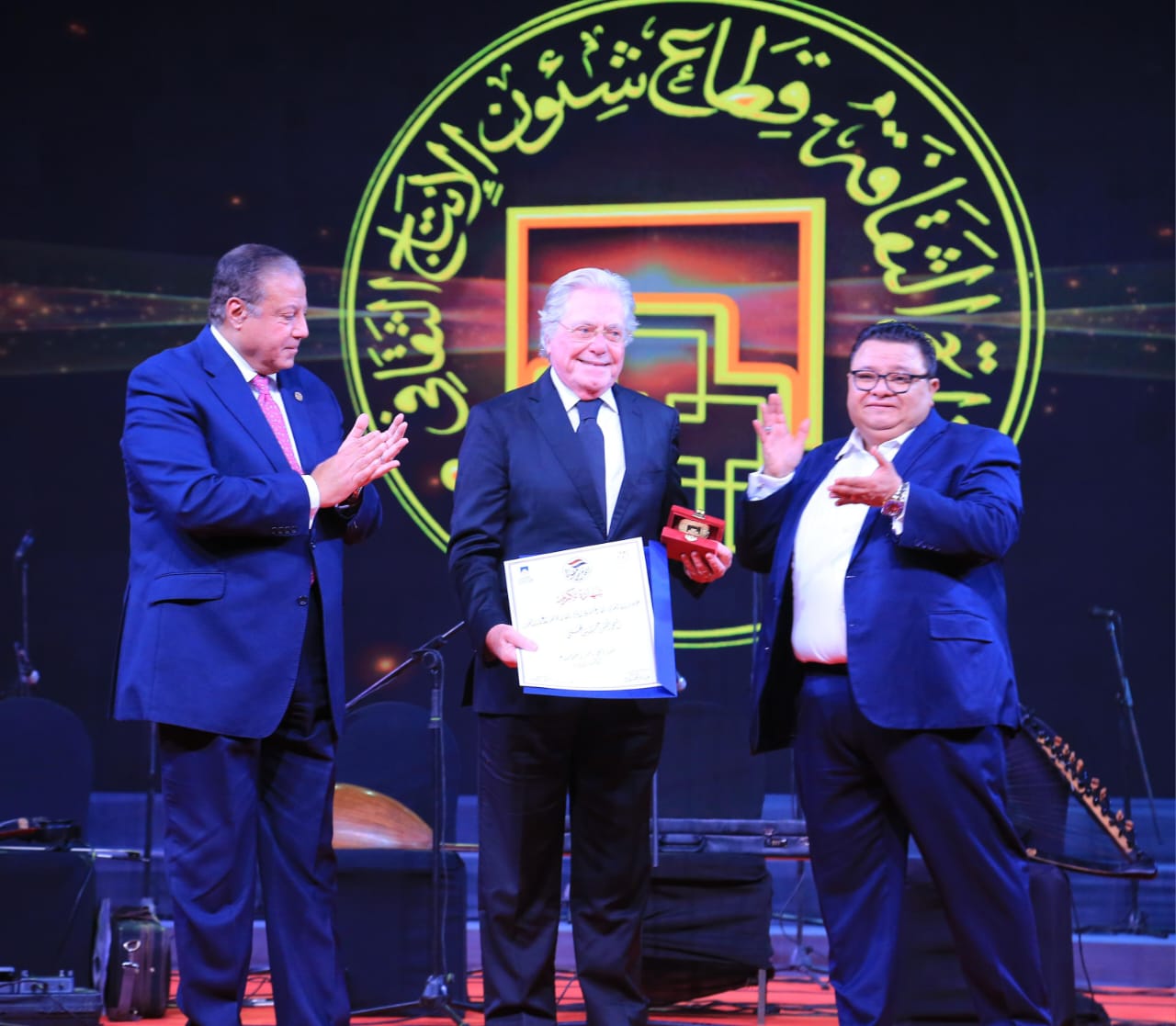 وأضاف جلال، ولأن الفن هو رفيق الوطن في أفراحه وانتصاراته، يعبر معه الأزمات، ويقف إلى جواره في مراحل البناء والتنمية، فإننا اليوم أيضًا نكرم كوكبة من نجوم الفن الذين حفروا في وجداننا بصمة تحمل حب الوطن وعشقه، فالفن وأهله سيظلون دوما في طليعة جنود الوطن، ومعاول البناء والتشييد، حتى تظل مصر شامخة، عصية على المعتدين.