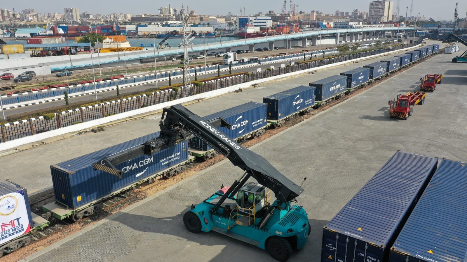 بالصور .. تشغيل تجريبى لقطارات البضائع بين ميناء أكتوبر الجاف ومحطة تحيا مصر بالإسكندرية