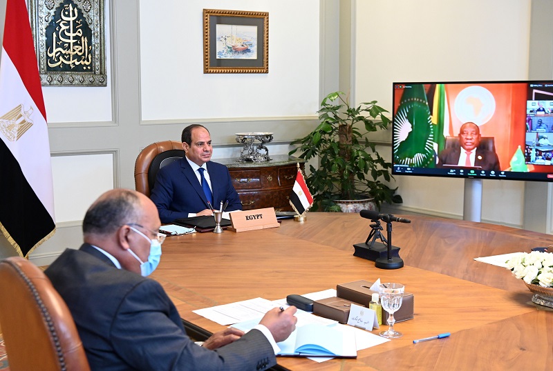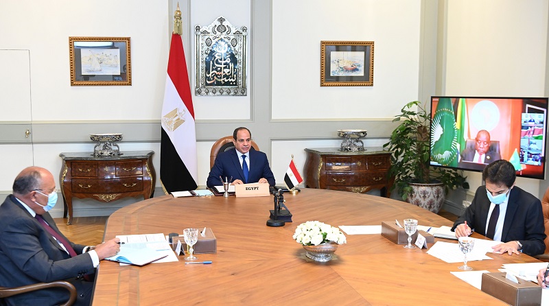 جاء ذلك خلال مشاركة الرئيس عبد الفتاح السيسي مساء أمس فى قمة مصغرة لرؤساء الدول الأعضاء بهيئة مكتب رئاسة الاتحاد الأفريقي عبر الفيديو كونفرانس لمناقشة قضية سد النهضة، وذلك برئاسة الرئيس سيريل رامافوزا رئيس جمهورية جنوب أفريقيا والرئيس الحالي للاتحاد، وبحضور كلٍ من أعضاء المكتب الرئيس الكيني أوهورو كينياتا، والرئيس المالي إبراهيم أبو بكر كيتا، والرئيس فيلكس تشيسيكيدي رئيس جمهورية الكونغو الديمقراطية، بالإضافة إلى مشاركة عبد الله الحمدوك رئيس وزراء السودان، و آبي أحمد رئيس وزراء إثيوبيا.