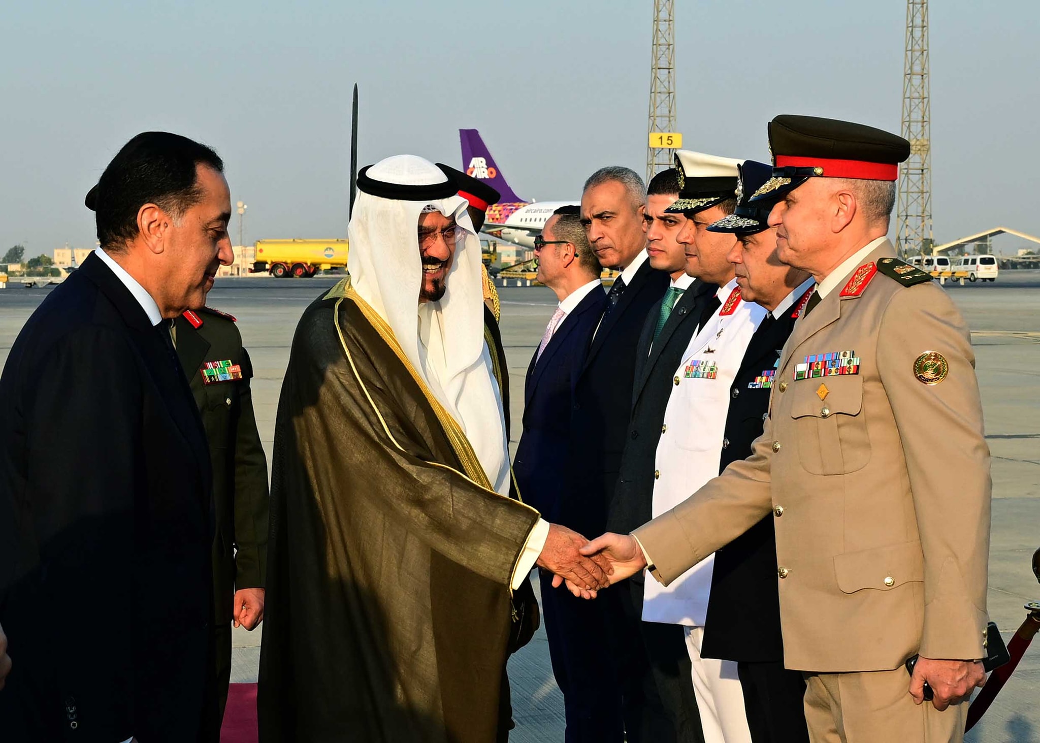 بالصور.. رئيس الوزراء يستقبل نظيره الكويتى بمطار القاهرة الدولى