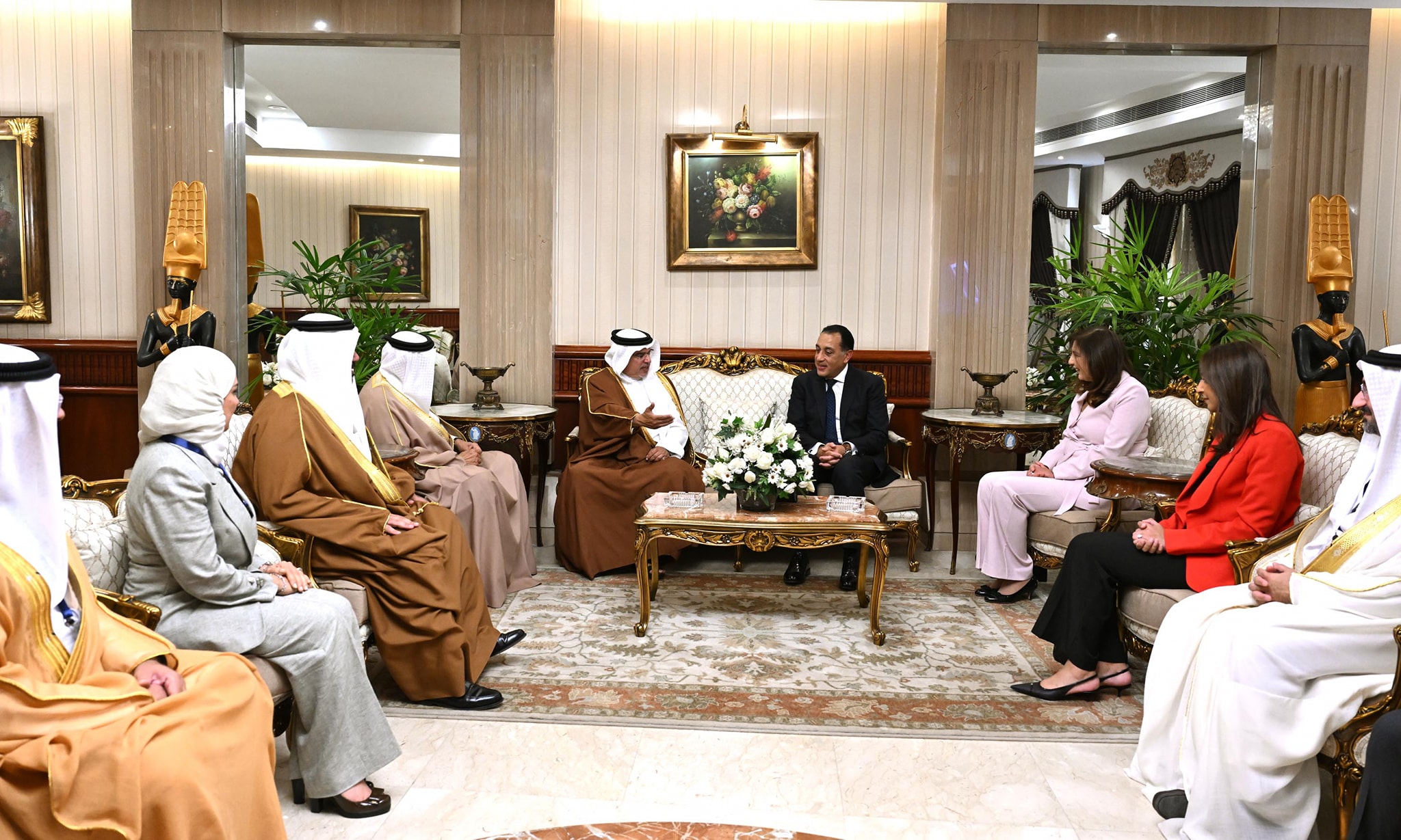 بالصور.. رئيس الوزراء يستقبل ولى عهد مملكة البحرين بمطار القاهرة الدولى