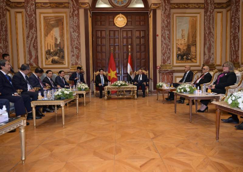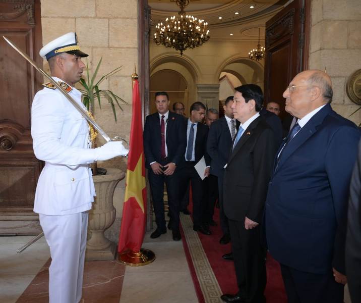 وأكد الرئيس الفيتنامي اهتمام بلاده بتعزيز علاقاتها مع مصر، باعتبارهما شريكين مهمين في محيطهما الإقليمي والدولي، مشيرًا إلى الاتفاق مع فخامة السيد الرئيس عبد الفتاح السيسي على ترفيع العلاقات إلى مستوى الشراكة الشاملة القائمة على التعاون المشترك في شتى المجالات.