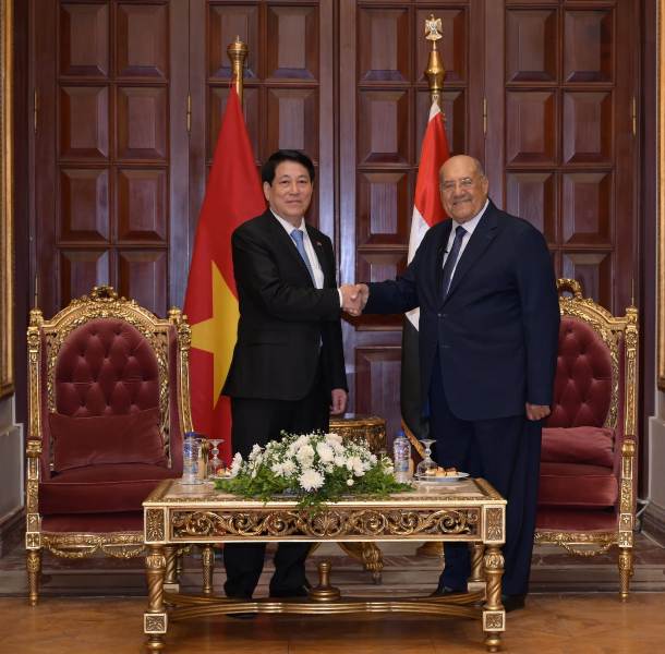 و رحّب المستشار عبد الرازق بالرئيس الفيتنامي والوفد المرافق، مشيدًا بما تشهده العلاقات المصرية–الفيتنامية من تطور ملحوظ، خاصة بعد الارتقاء بها إلى مستوى الشراكة الشاملة، كما تناول الجانبان سبل تعزيز التعاون بين البلدين في مختلف المجالات، لاسيما على الصعيد البرلماني، وتفعيل جمعية الصداقة البرلمانية بما يخدم المصالح المشتركة.
