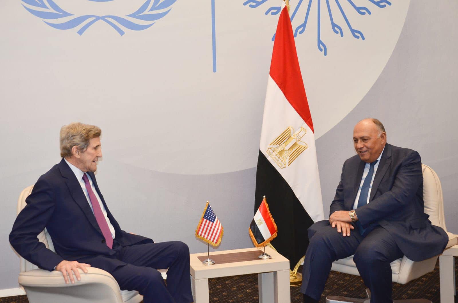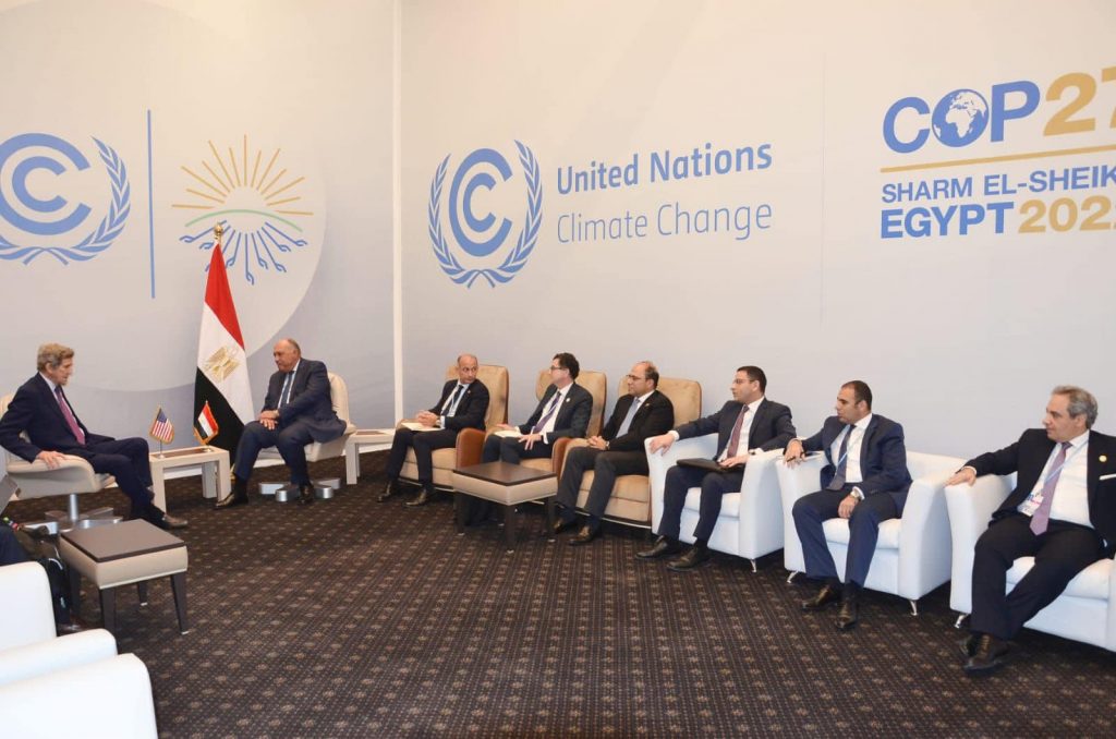 استقبل سامح شكري وزير الخارجية رئيس الدورة ٢٧ لمؤتمر أطراف اتفاقية الأمم المتحدة الإطارية لتغير المناخ COP27، اليوم الخميس، جون كيري المبعوث الرئاسي الأمريكي الخاص للمناخ.
