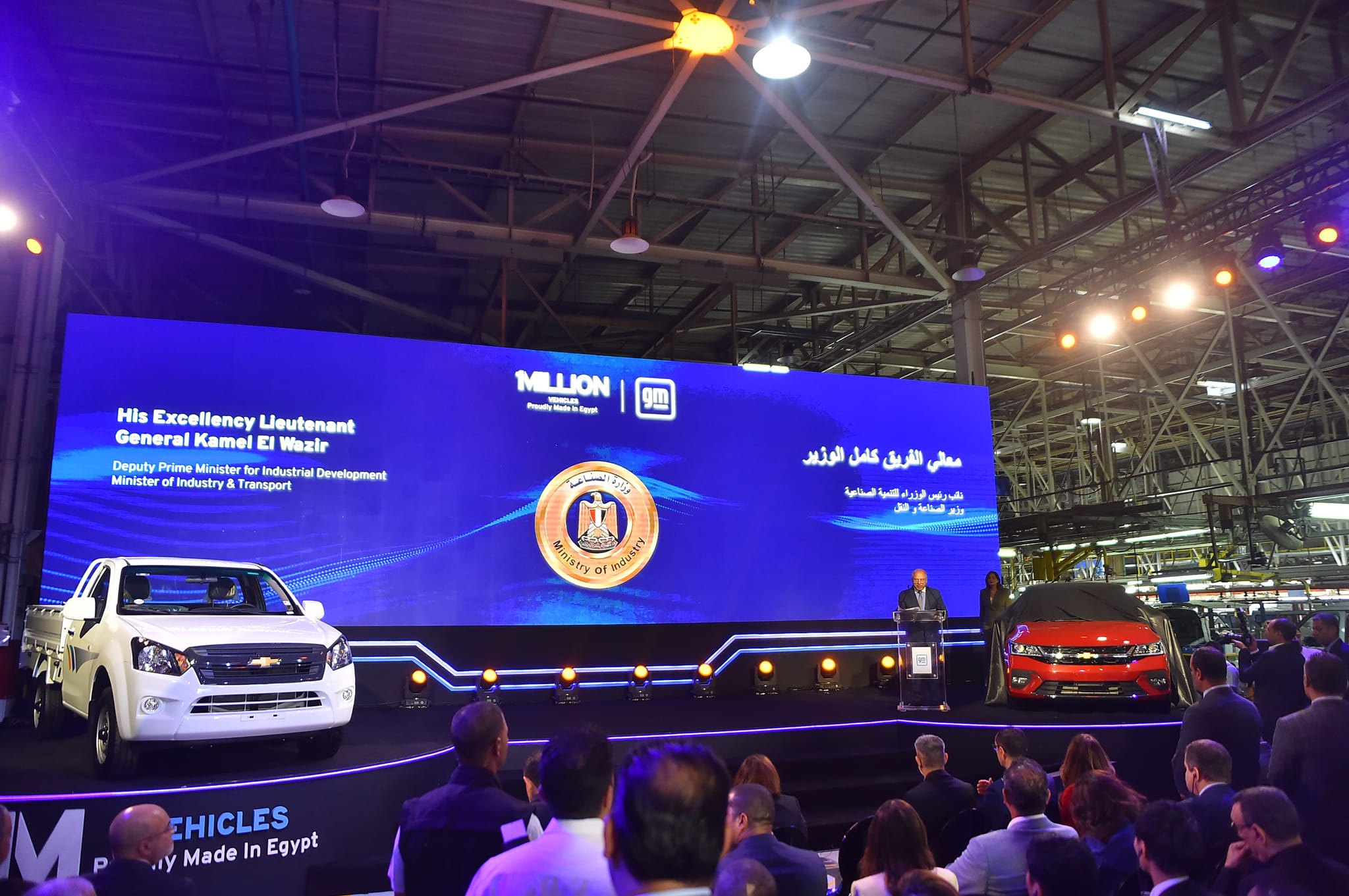 و أعرب الوزير – في بداية كلمته- عن سروره لتواجده في الاحتفال بأول شركة خاصة لصناعة السيارات في مصر تنتج مليون سيارة محلية، بالتعاون مع جنرال موتورز العالمية والتي أسست أول صرح صناعي إقليمي لجنرال موتورز في الإسكندرية منذ نحو 90 عاماً، وتقوم بالتصدير إلى دول منطقة اليورومتوسطي، والشرق الأوسط وإفريقيا.