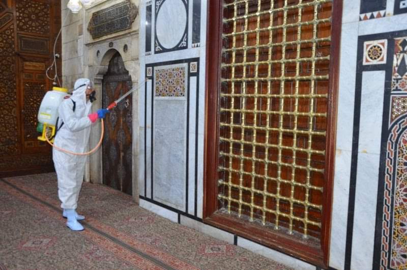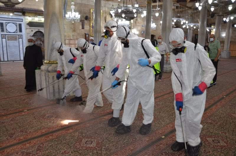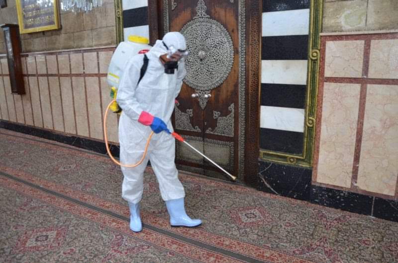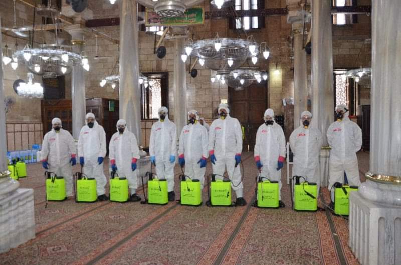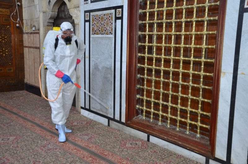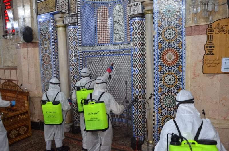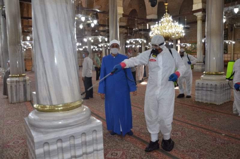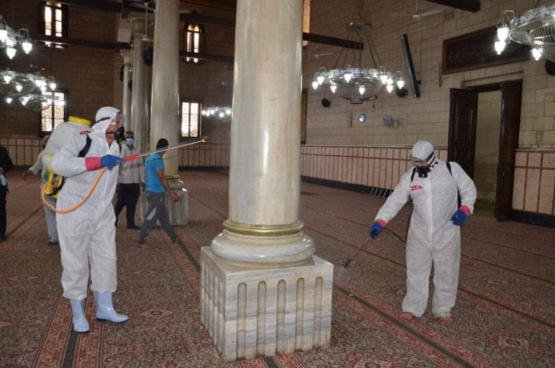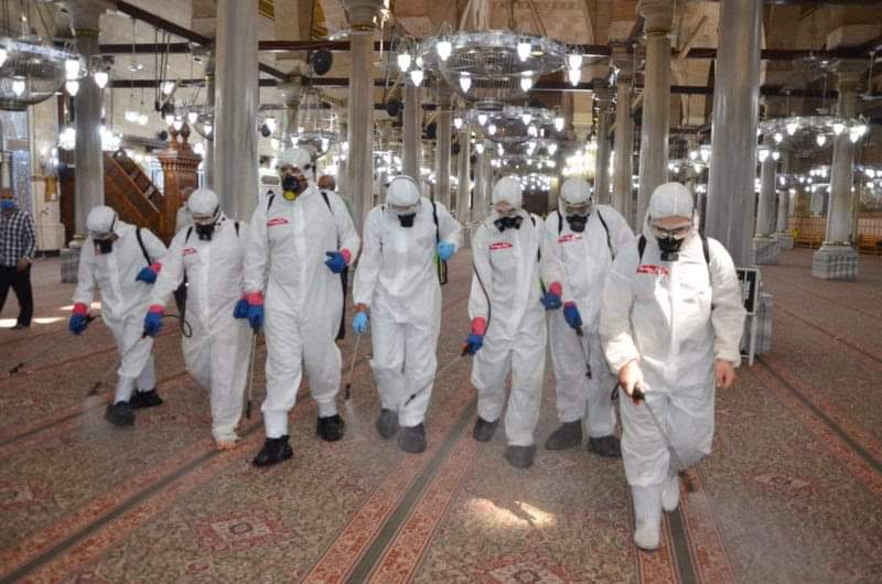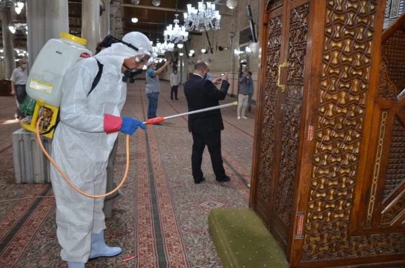 بالصور .. وزير الأوقاف: مساجد الجمهورية تشهد حملة تعقيم واسعة..ووضع علامات التباعد لإرشاد المصلين