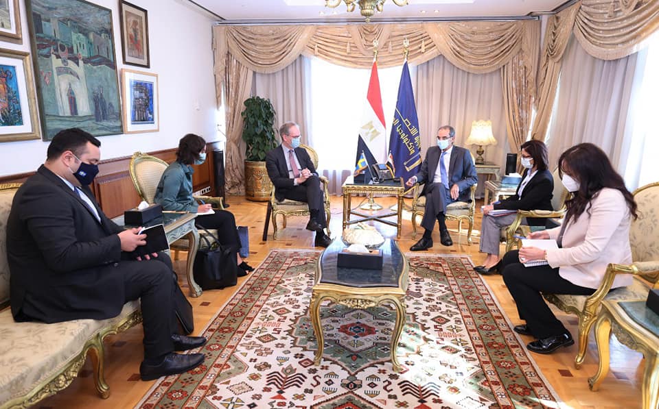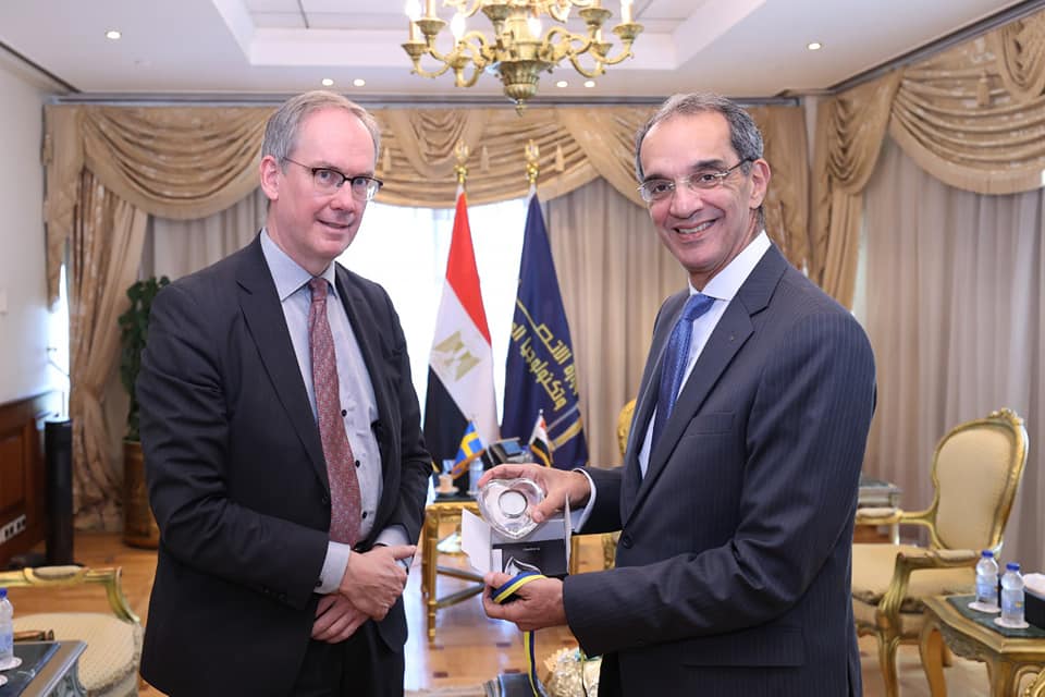 استقبل الدكتور عمرو طلعت وزير الاتصالات وتكنولوجيا المعلومات هوكان إيمسجارد سفير مملكة السويد بالقاهرة لمناقشة سبل تعزيز التعاون الثنائى بين البلدين فى مجالات الاتصالات وتكنولوجيا المعلومات، وتفعيل التعاون فى مجالات الذكاء الاصطناعى، والتكنولوجيات المالية، والابتكار وريادة الأعمال، وإنشاء المدن الذكية، والأمن السيبرانى، والبحوث التطبيقية، وكذلك الاستفادة من الخبرة السويدية في التطبيقات التكنولوجية المختلفة التى تخدم المواطنين فى شتى المجالات.