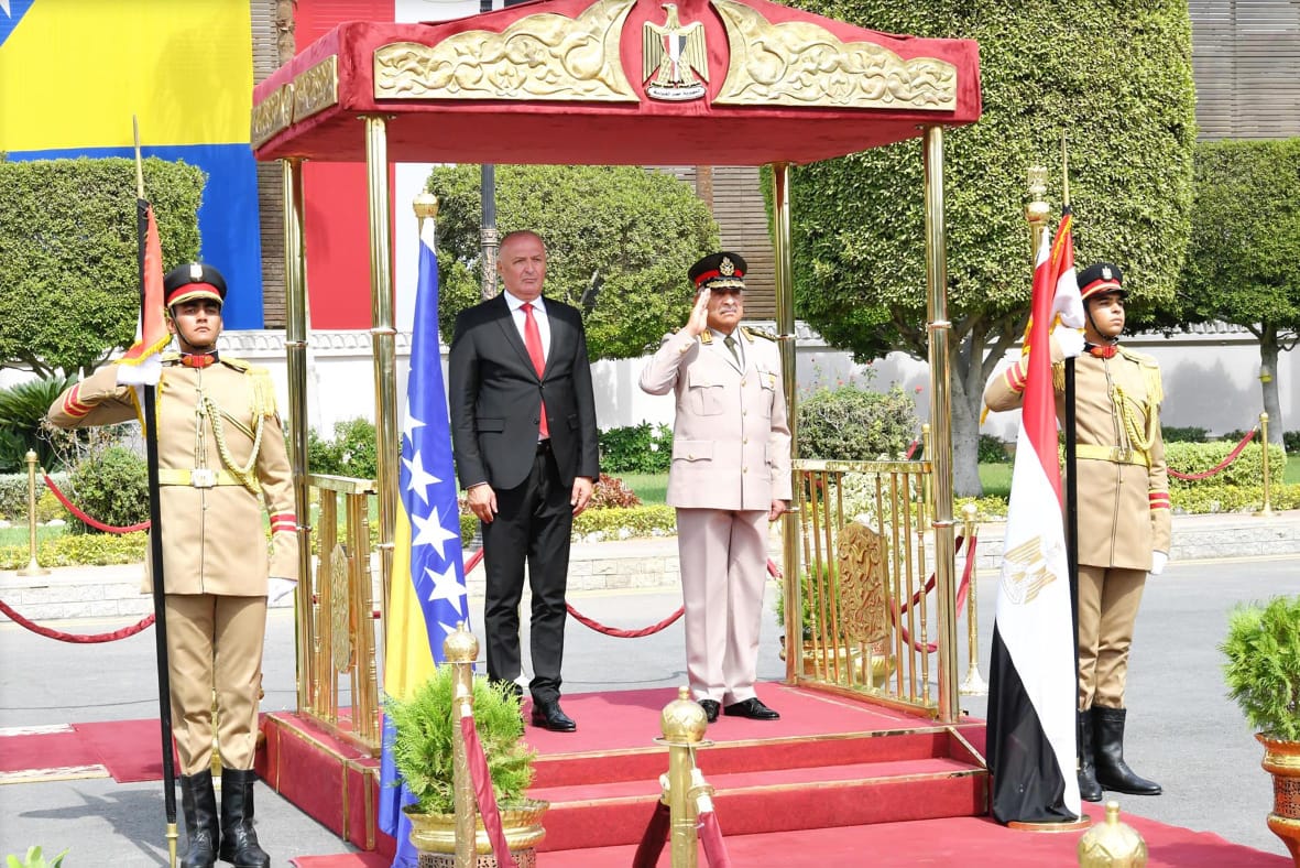 وأكد القائد العام للقوات المسلحة على اعتزازه بالعلاقات التاريخية التى تربط بين مصر ودولة البوسنة والهرسك، مشيراً إلى أهمية استمرار تنسيق الجهود والتعاون العسكرى بين القوات المسلحة لكلا الجانبين.