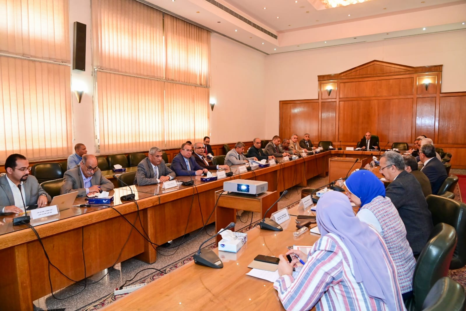 تم عقد الاجتماع بحضور كل من السيد المهندس/ محمد صالح الوكيل الدائم للوزارة ، والسيد المهندس/ على منوفى رئيس مصلحة الرى ، والسيد الاستاذ الدكتور/ عصام خليفة رئيس هيئة الصرف ، والسيد الدكتور/ أيمن السيد رئيس مصلحة الميكانيكا والكهرباء ، والسيد الدكتور/ رجب عبد العظيم مساعد الوزير لشئون المياه ، والسيد المهندس/ حسن يحيى نائب رئيس مصلحة الميكانيكا والكهرباء ، والسيد المهندس/ وليد حقيقى رئيس قطاع التخطيط ، والسيد المهندس/ علاء خالد رئيس قطاع حماية وتطوير نهر النيل وفرعيه ، والسيد المهندس/ إيهاب الجوهرى رئيس قطاع الخزانات والقناطر الكبرى ، والسيد المهندس/ نادى جرجس رئيس قطاع الرى ، والسيد الأستاذ الدكتور/ سامى سعد مدير معهد بحوث الهيدروليكا ، والسيد الأستاذ الدكتور/ جمال محمد القصار مدير معهد بحوث إدارة المياه وطرق الرى ، والسيد الأستاذ الدكتور/ ياسر رسلان مدير معهد بحوث النيل ، والسيد الأستاذ الدكتور/ حسام سيف مدير معهد بحوث صيانة القنوات المائية ، والسيد الدكتور/ أحمد مدحت رئيس الإدارة المركزية المشرف على مكتب الوزير ، والسيدة المهندسة/ إيمان عبد العزيز رئيس الإدارة المركزية للتفتيش الفني والمالي والإداري والمشرف على خدمة المواطنين وشئون مجلسي النواب والشيوخ ، والسيد المهندس/ علاء عبد السلام رئيس الإدارة المركزية لتوزيع المياه ، والسيد المهندس/ سامى الشابورى رئيس الإدارة المركزية لصيانة المجارى المائية ، والسيدة المهندسة/ سناء عبد الرشيد رئيس الإدارة المركزية للتخطيط والمتابعة بهيئة الصرف ، والسيد الأستاذ الدكتور/ محمد رشدى بالمكتب الفني للسيد الوزير ، والسيد المهندس/ محمد عمر مكرم معاون الوزير للمشروعات الكبرى ، والسيد المهندس/ احمد عبد العزيز بالمكتب الفنى للسيد الوزير .