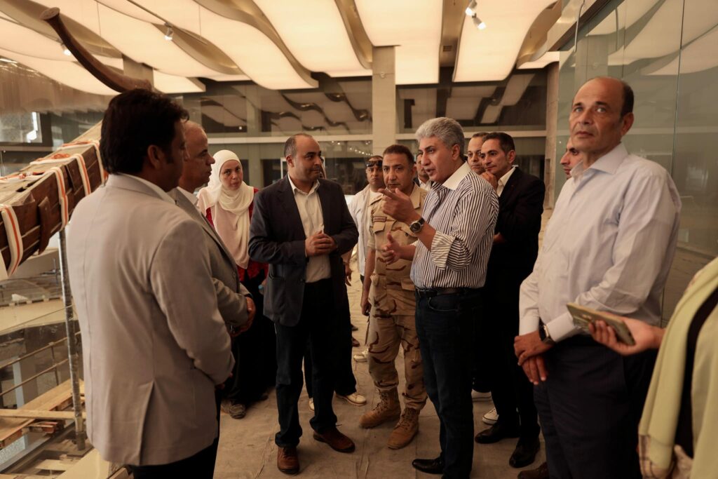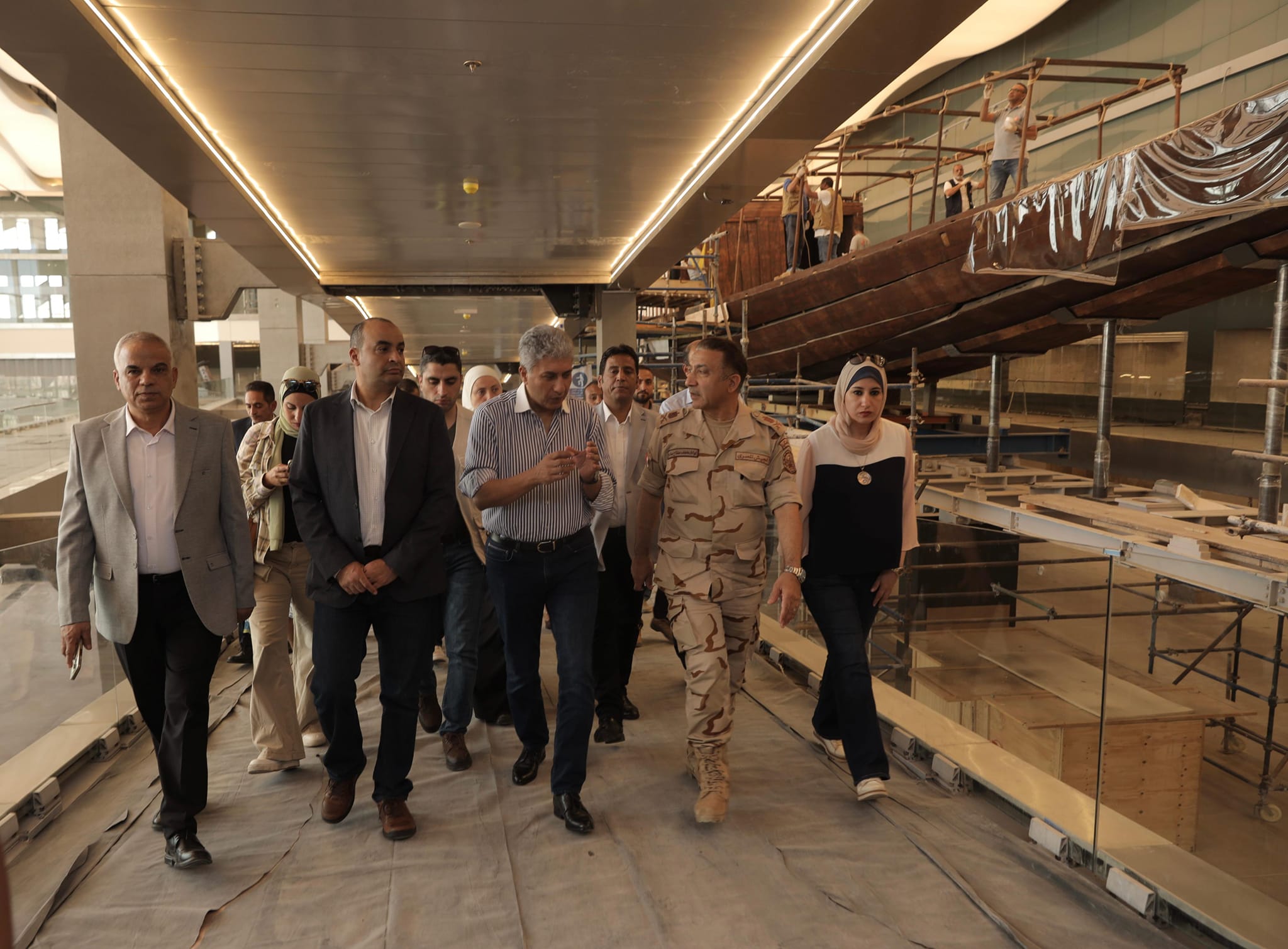 كما تفقد الوزير، متحف مراكب الملك خوفو وما تم إنجازه من أعمال به وكذلك مسار الزيارة داخله وسيناريو العرض الخاص به حيث تم استعراض آخر المستجدات الخاصة بأعمال ترميم المركب الأولى، وكذلك أعمال ترميم المركب الثانية بما يضمن الانتهاء منها في الوقت المحدد لها وعرضها جنباً إلى جنب مع المركب الأولي لأول مرة.