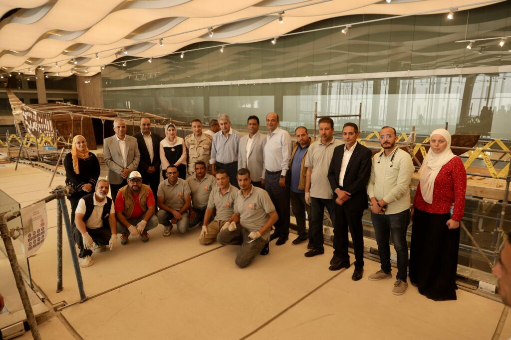 وفي نهاية الجولة، حرص الوزير على لقاء مجموعة من العاملين بالمتحف من الأثريين والمرممين والتحدث معهم والتقاط الصور التذكارية معهم، مثمناُ على الجهود التي يبذلونها للحفاظ على الآثار المصرية العريقة وللانتهاء من هذا المشروع الضخم، معرباً عن إعجابه وتقديره البالغ لحجم الإنجاز الذي تشهده الأعمال بالمتحف، مشيراً إلى أن هذا المشروع يعتبر من أهم المشروعات الكبرى والهامة التي تقوم بها الدولة المصرية وتوليها اهتماماً كبيراً.