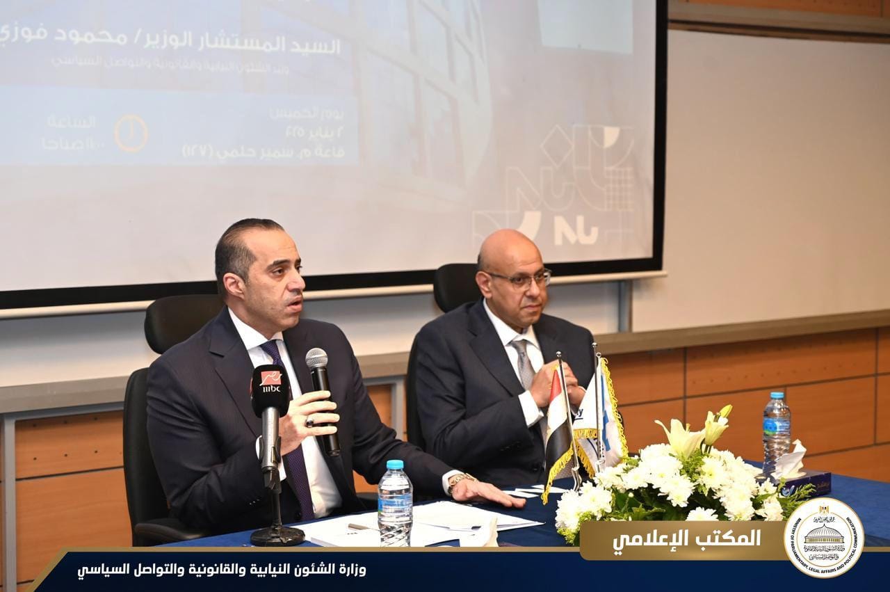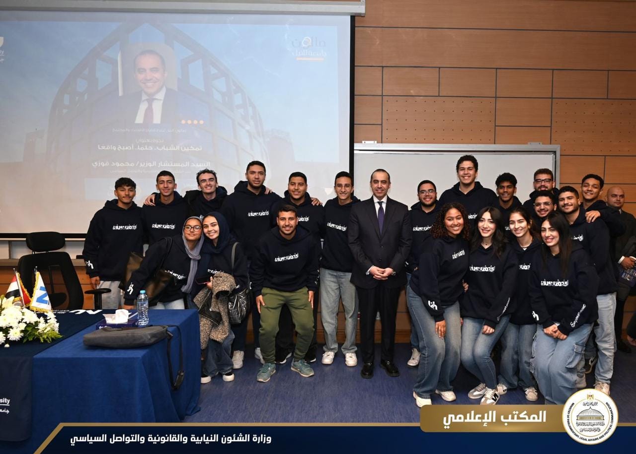 شارك المستشار محمود فوزي، وزير الشئون النيابية والقانونية والتواصل السياسي، في حوار مفتوح مع طلاب وعمداء وأساتذة الجامعة خلال لقاء بعنوان “تمكين الشباب.. حلمًا.. أصبح واقعًا”، وقد شهد اللقاء حضورًا متميزًا من الطلاب وأعضاء هيئة التدريس، حيث تم مناقشة عدة محاور تتعلق بتمكين الشباب وتعزيز دورهم في المجتمع، ويأتي ذلك في أطار دور وزارة الشئون النيابية والقانونية في مهام التواصل السياسي وحرصها على تعزيز التواصل مع الشباب ورفع الوعي السياسي والنيابي.