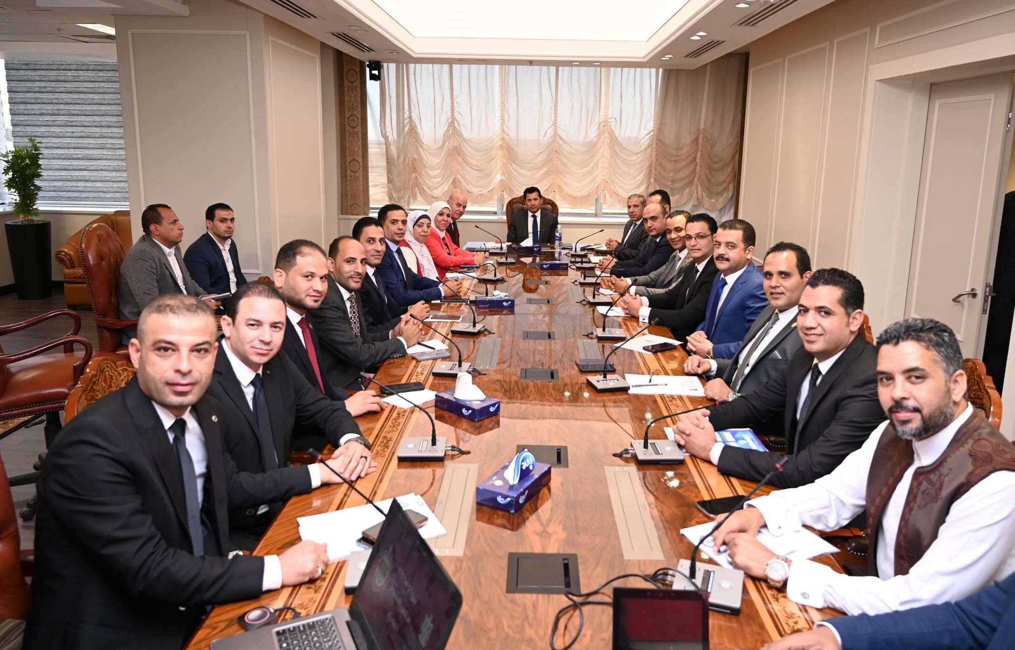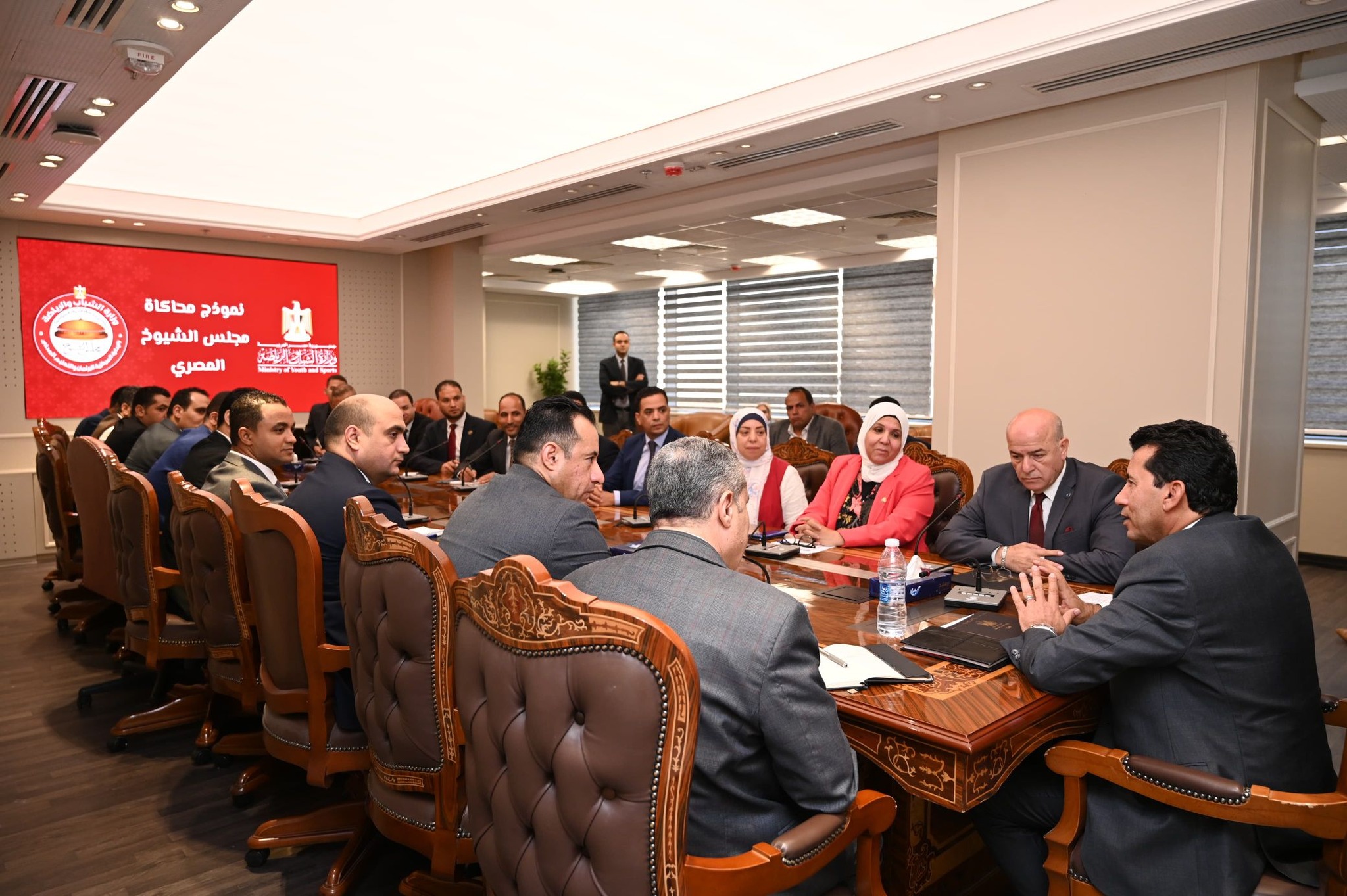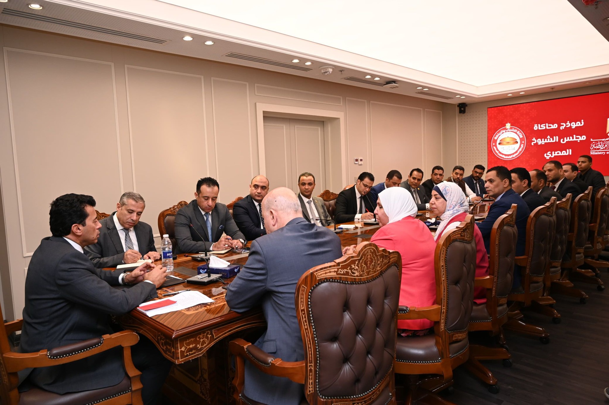 عقد الدكتور أشرف صبحي وزير الشباب والرياضة، بمقر الوزارة بالعاصمة الإدارية، اجتماعاً بهيئة مكتب نموذج محاكاة مجلس الشيوخ ورؤساء اللجان النوعية بالنموذج، لبحث ومناقشة المقترحات والأفكار والرؤى المقدمة من الأعضاء، وكذلك استعراض الأنشطة والفعاليات التي نفذت خلال الفترة الماضية، وذلك بحضور قيادات وزارة الشباب والرياضة، يأتي ذلك في إطار المبادرة الرئاسية للتنمية البشرية ” بداية جديدة لبناء الإنسان”.