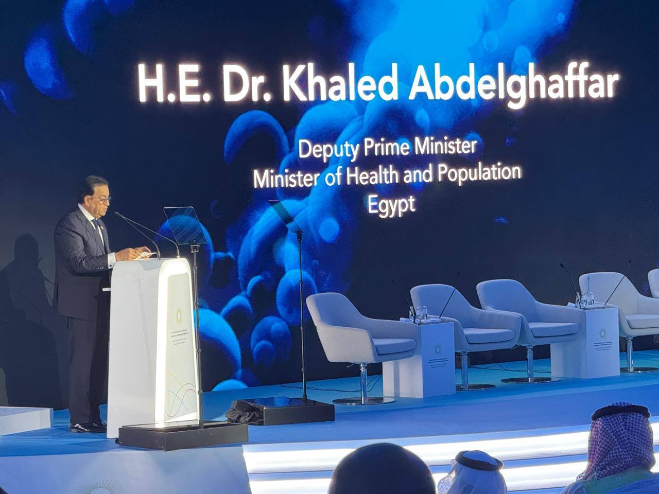 وفي بداية كلمته، وجه الوزير خالد عبدالغفار، الشكر والتقدير لوزير الصحة السعودي، وكافة المسؤوليين عن الأنظمة الصحية، بمختلف الدول المشاركة، على جهودهم وسعيهم نحو تنفيذ استراتيجيات هدفها مقاومة مضادات الميكروبات والحفاظ على الحالة الصحية للجميع.