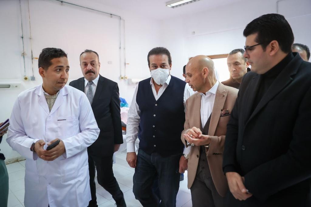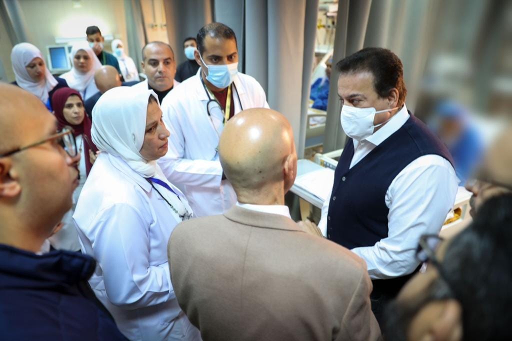 وتابع أن الوزير تفقد أقسام “إنعاش القلب، الجراحات البسيطة، الاستقبال، وحدة الكلى الجديدة، التعقييم المركزي” حيث وجه بإعداد خطة للتوسع في استغلال المساحات الفضاء بالمستشفى، وبناء مباني جديدة وفقا لأحدث المعايير العالمية، بما يساهم في تحقيق أكبر تغطية صحية، كما وجه برفع كفاءة منطقة انتظار المرضى، مضيفا أن الوزير اطلع على ملفات المرضى، ومعدلات التردد على الأقسام المختلفة، وكذلك الحالات التي تم مناظرتها من خلال مبادرة التشخيص «عن بعد» والبالغ عددهم 560 مريض حتى الآن.