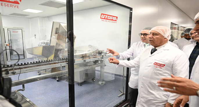 ثم توجه نائب رئيس مجلس الوزراء للتنمية الصناعية وزير الصناعة لتفقد مصنع شركة يوتوبيا للأدوية بالمجمع الصناعي أندستريا غرب – السويدي بمدينة العاشر من رمضان والمقام على مساحة 18 ألف متر مربع بإجمالي استثمارات مليار و100 مليون جنيه وحيث يخصص المصنع منتجاته للسوق المحلية ويصدر نحو 15% من إنتاجه للخارج ويعمل به 1050 موظفا، كما تبلغ نسبة المكون المحلي بإنتاجه 90%، ويتفرد المصنع بإنتاج مستحضرات طبية مهمة لعلاج أمراض القلب وارتفاع ضغط الدم، وقد كان في استقبال الوزير بالمصنع الدكتور السعيد كامل، رئيس مجلس الإدارة وأعضاء مجلس الإدارة وقيادات المصنع.