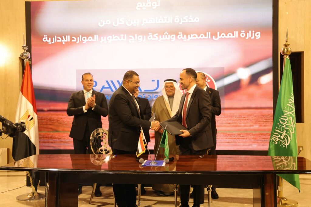 وقع علي مذكرة التفاهم من جانب وزارة العمل المصرية،محمد عليان رئيس مكتب التمثيل العمالي بسفارة جمهورية مصر العربية بالرياض ،و من شركة “رواج”، خالد صالح الرئيس التنفيذي للشركة.