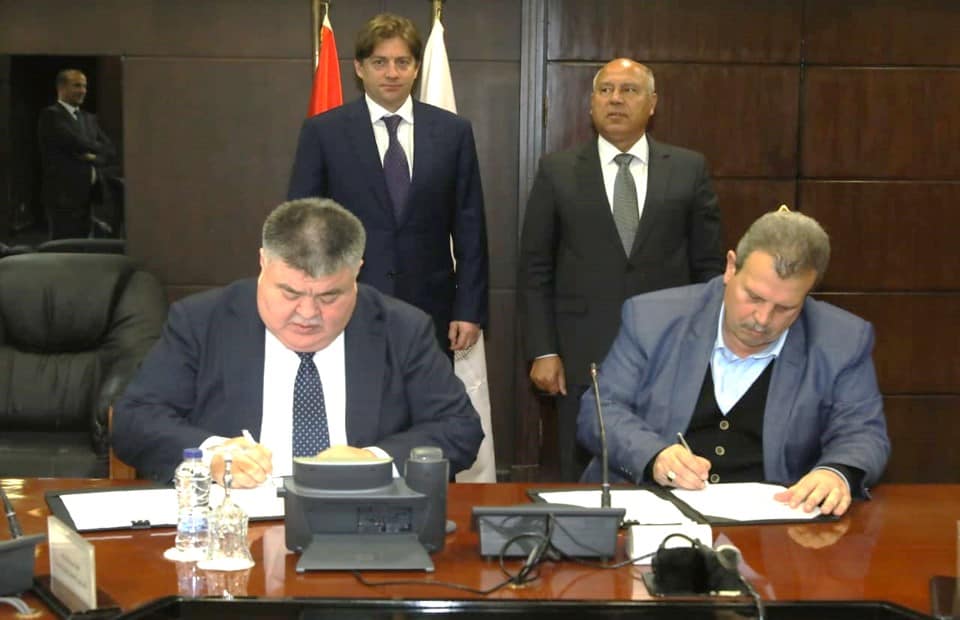 بالصور.. وزير النقل يشهد عقد انشاء ورشة لصيانة وعمرة عربات القطارات الروسية بورش ابوزعبل