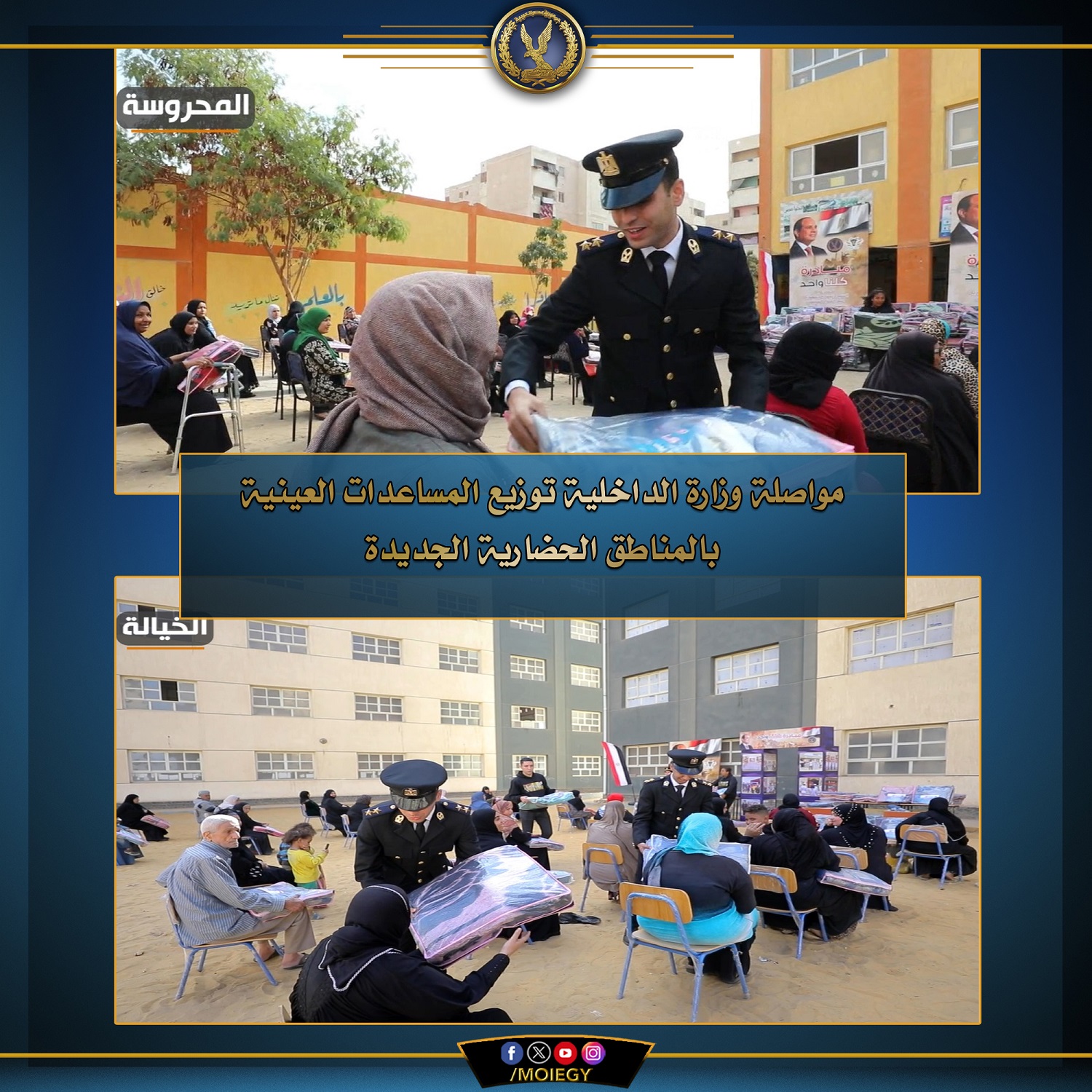 يأتي ذلك في إطار مواصلة وزارة الداخلية لدورها الإنساني والاجتماعي فى تقديم الدعم؛ لرفع الأعباء عن كاهل المواطنين، وانطلاقاً من المسئولية المجتمعية للوزارة لتنمية وتطوير المجتمع والمساهمة فى تقديم كافة أوجه الرعاية للمناطق الحضارية الجديدة.