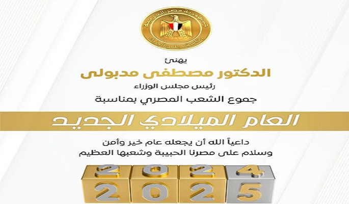 هنأ رئيس مجلس الوزراء الدكتور مصطفى مدبولي، جموع الشعب المصري بمناسبة العام الميلادي الجديد.