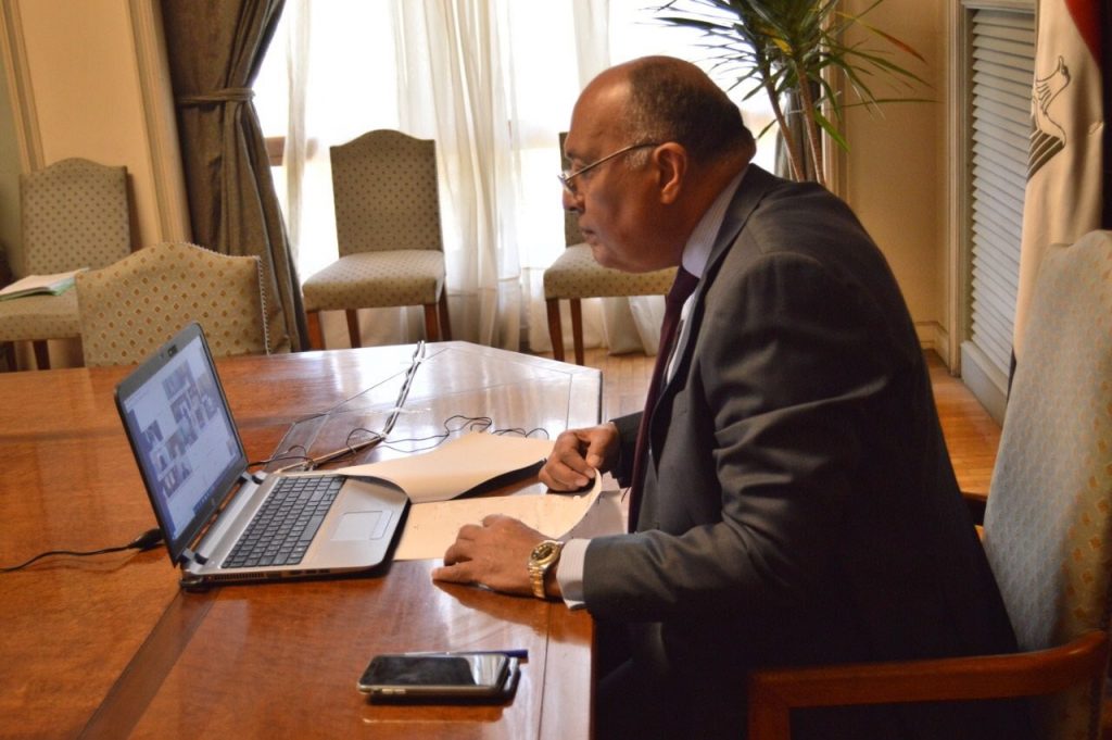 وقال المتحدث باسم الخارجية، على حسابها على تويتر، “عبر تقنية “الفيديو كونفرنس.. وزير الخارجية سامح شكري يُشارك في الدورة غير العادية لمجلس جامعة الدول العربية على المستوى الوزاري، والتي تُعقد بطلب من جمهورية مصر العربية”.