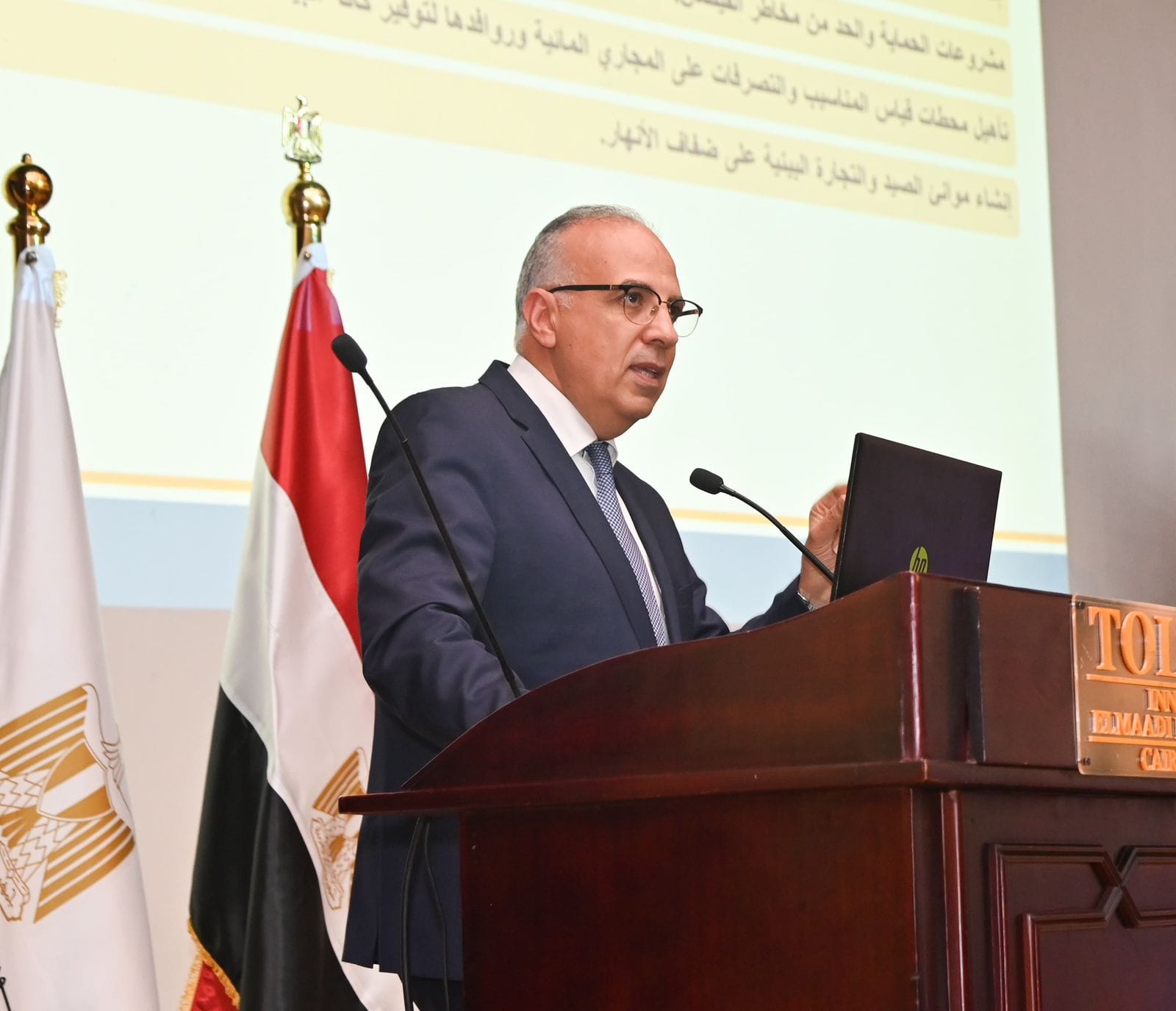 وأشار الوزير إلى تحديات المياه في مصر، حيث تصل الاحتياجات المائية إلى 114 مليار متر مكعب سنوياً تقابلها موارد مائية لا تتجاوز 60 مليار متر مكعب سنوياً، حيث يتم سد جزء من الفجوة بين الموارد والاحتياجات المائية من خلال إعادة استخدام 21 مليار متر مكعب من المياه سنوياً، بالإضافة إلى استيراد محاصيل من الخارج بما يقابل حوالي 5ر33 مليار متر مكعب سنوياً، وهو ما يعرف بالمياه الافتراضية.