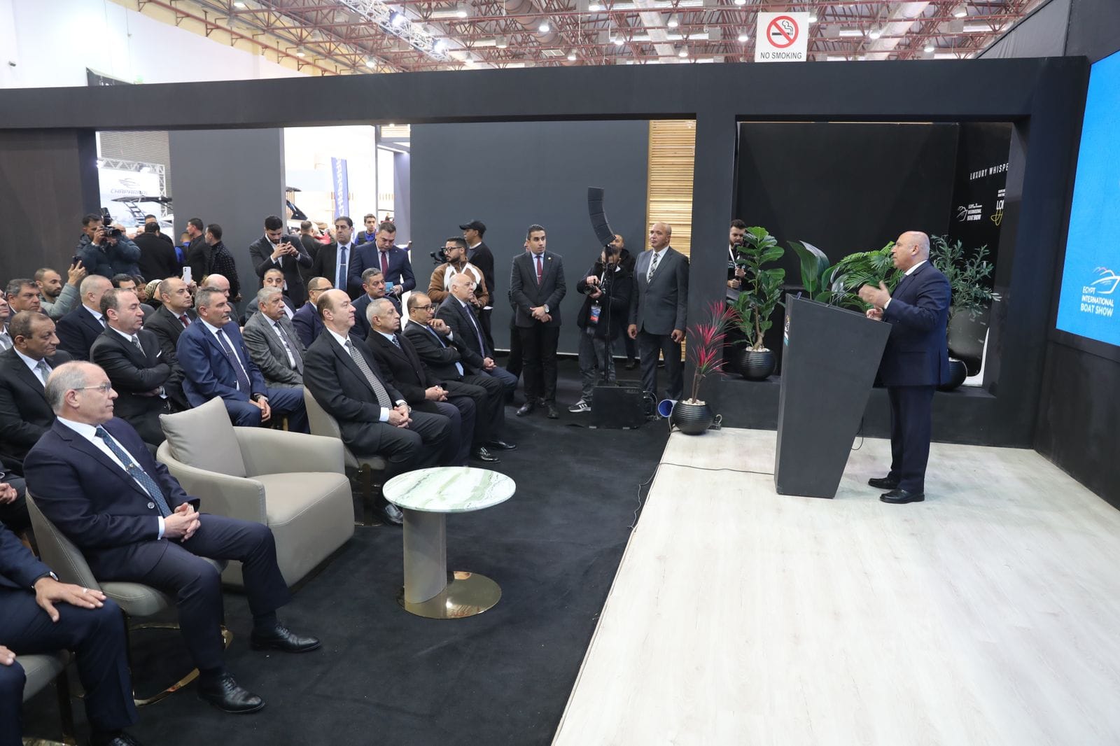 وتفقد نائب رئيس مجلس الوزراء للتنمية الصناعية وزير الصناعة والنقل أجنحة المعرض المختلفة واشاد بالمشاركة الواسعة التي يشهدها المعرض من كبرى الشركات الدولية المتخصصة في مجال اليخوت والقوارب حيث يشارك بالمعرض ما يزيد عن 40 شركة وأكثر من 120 علامة تجارية عارضة لتصميمات يخوت مختلفة الأحجام وكذلك كل ما يخص اليخوت السياحية من ماكينات دفع ومعدات وأجهزة وتجهيزات إعاشة لخدمة هذا القطاع وتطويره كما أن المعرض يعتبر فرصة حقيقية لمن يرغب فى إقتناء يخت وذلك بغرض إنعاش السوق الخاص باليخوت ووضع مصر على خريطة سياحة اليخوت العالمية وذلك بهدف تعظيم سياحة اليخوت تنفيذا لتوجيهات فخامة الرئيس عبد الفتاح السيسي رئيس الجمهورية خاصة وان مصر بموانئها الحديثة ومرافقها المتطورة تعتبر وجهة مثالية للمهتمين بممارسة الأنشطة البحرية.