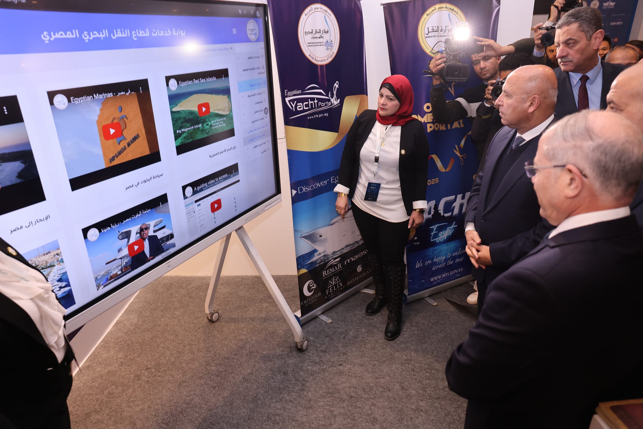 وبدأت فعاليات الافتتاح بإطلاق وتدشين نائب رئيس مجلس الوزراء للتنمية الصناعية وزير الصناعة والنقل لمنصة اليخوت المحلية و التى تمثل خطوة كبيرة نحو تعزيز السياحة البحرية في مصر و تعظيم اليخوت المحلية وحيث ستتولى وزارة النقل ممثلة في قطاع النقل البحرى ادارة المنصة التي تهدف إلى تسهيل عملية الخدمات المخصصة لليخوت السياحية في المراين المختلفة كما يمكن من خلال هذه المنصة تقديم مالكي اليخوت والمستثمرين في قطاع السياحة البحرية خدماتهم بشكل أكثر تنظيماً وشفافية بالاضافة الى مساهمة المنصة في تحفيز القطاع البحري المحلي وفتح فرص جديدة للاستثمار في مجال اليخوت السياحية فضلاً عن تحسين التفاعل بين مقدمي خدمات (الدعم اللوجستي، و الصيانة، والأنشطة البحرية المختلفة) ومرتادي المراين، كما ستساهم في تعزيز الحوكمة وتنظيم الإجراءات المتعلقة بتسجيل اليخوت، وضمان الامتثال لمعايير السلامة البيئية والبحرية في المراين السياحية المختلفة.
