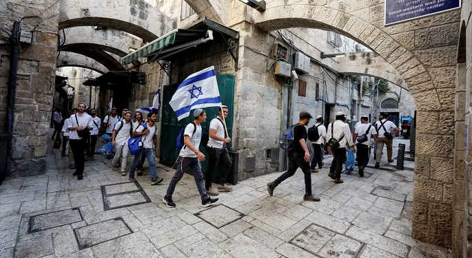 ويحيي هذا الموكب السنوي بالقدس احتلال إسرائيل للمدينة القديمة في حرب عام 1967، ويجتذب آلاف المشاركين في شوارعها الضيقة والحجرية.