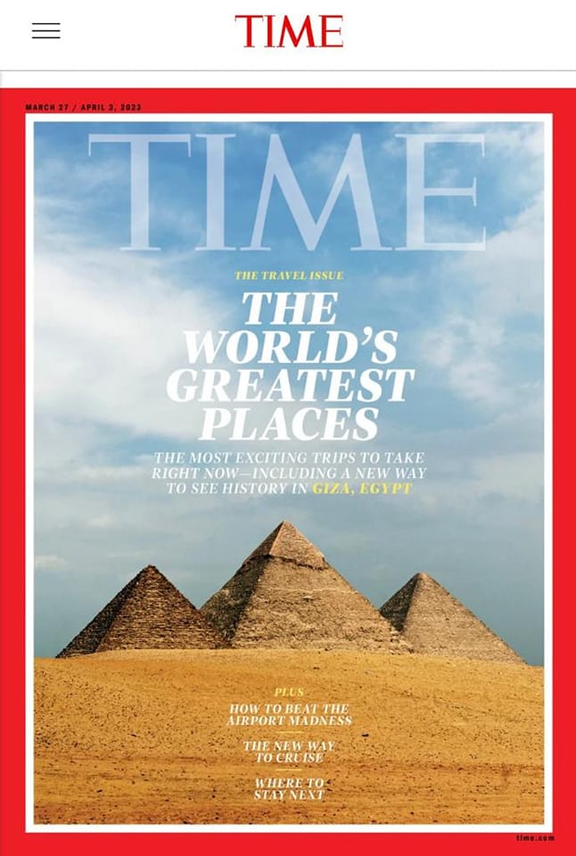 اختارت مجلة (التايمز) الأمريكية، منطقتي الجيزة وسقارة الأثريتين ضمن أفضل 50 وجهة سياحية لعام 2023 على مستوى العالم.