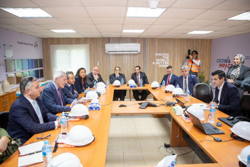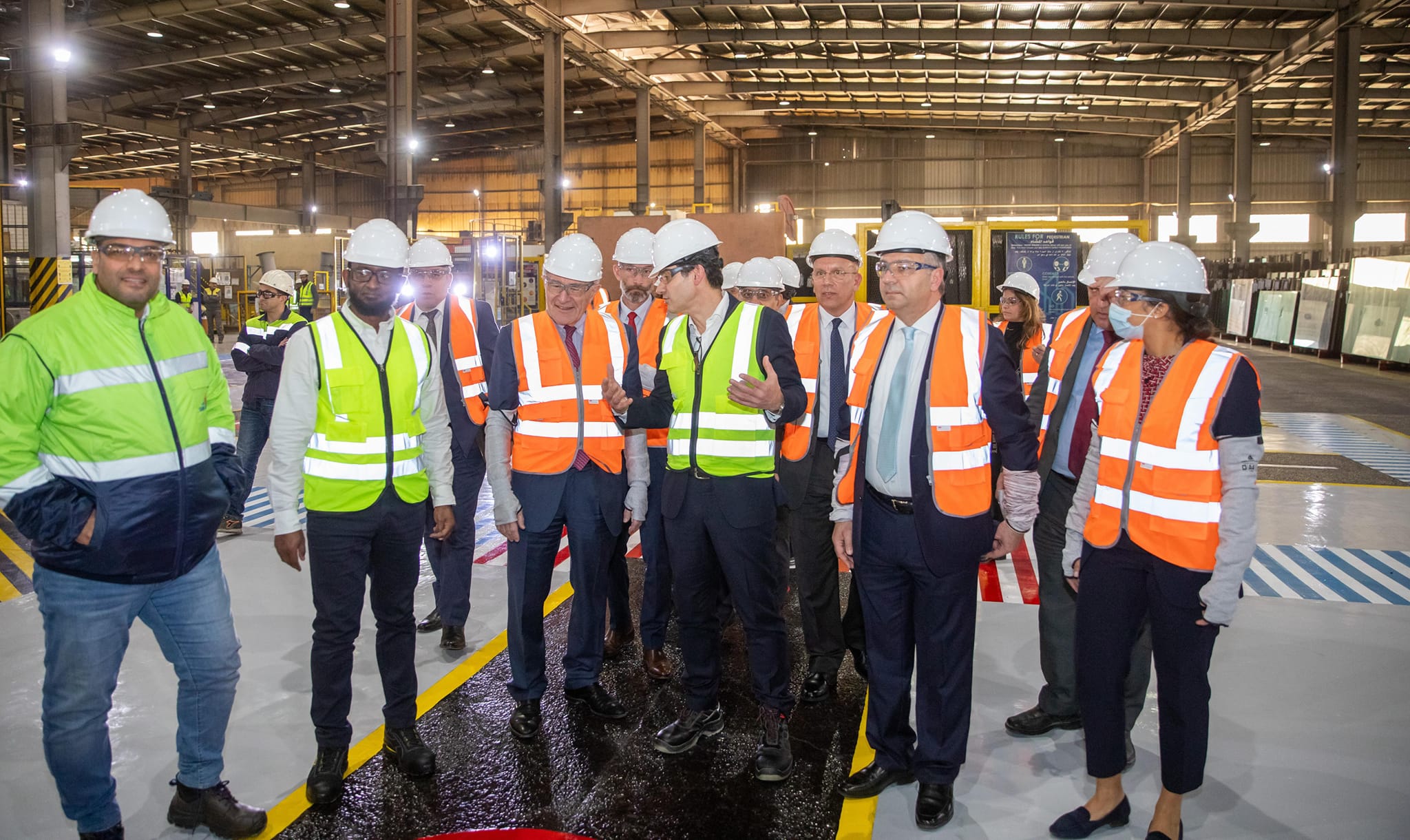 وعقب الاجتماع توجه السيد/ جيرارد ميستراليت والوفد المرافق له إلى زيارة ميدانية لمنطقة السخنة الصناعية المتكاملة، لزيارة “مصنع سان جوبان” لتصنيع الزجاج والذي يعد أحد أهم الاستثمارات الفرنسية داخل اقتصادية قناة السويس، حيث استمع الوفد إلى شرح مفصل عن المصنع من السيد/ فيليب بيلون المدير العام، لمصنع سان جوبان مصر، والذي عبر عن أن الموقع المتميز ساعد الشركة على تحقيق أهدافها في الوصول إلى 76 دولة خلال 16عامًا، كما أكد على توافر العمالة المصرية المؤهلة متمثلة في الكفاءات المصرية التي تعمل داخل المصنع بأحدث التقنيات التكنولوجية في هذا المجال، كما تفقد الوفد مصنع “إيرليكيد” الإسكندرية للغازات الطبية والصناعية، داخل نطاق المطور الصناعي “شركة تنمية خليج السويس”، وتم زيارة “مصنع مصر للهيدروجين الأخضر” داخل نطاق المطور الصناعي “أوراسكوم”، بالإضافة إلي تفقد ميناء السخنة التابع للمنطقة الاقتصادية لقناة السويس، والذي يخضع لمجموعة من أعمال التطوير ليشمل 6 أحواض بدلًا من حوضين.