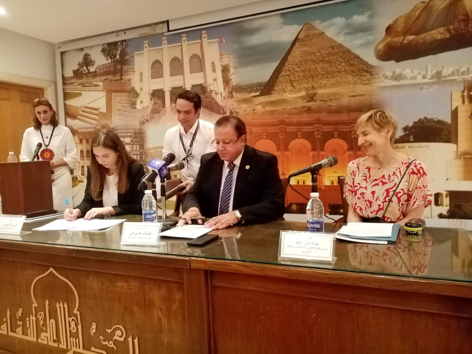وقام بالتوقيع الدكتور هشام عزمى امين عام المجلس الأعلى للثقافة بحضور كل من خوانا ميرا كابيلو رئيس عمليات القطاع الثانى اقتصادى، و ميكيليه ريزى الملحق الثقافى للاتحاد الأوروبى، فريدريكا بيريا مديرة قسم البرامج الثقافية والمشرف على إقليم الشرق الأوسط وشمال إفريقيا وممثل اتحاد المعاهد الثقافية الوطنية الأوروبية.