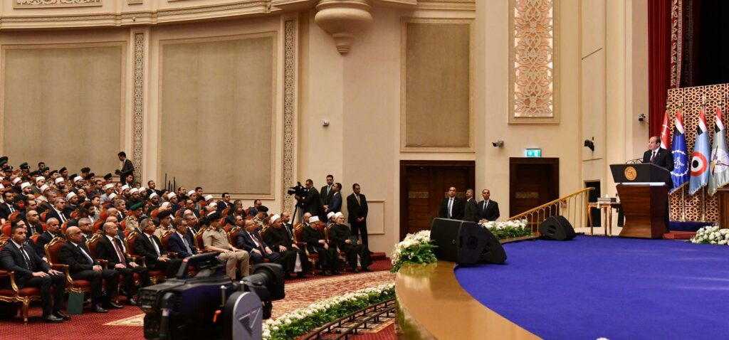 بالفيديو والصور.. الرئيس السيسى: نحن فى زمن تتعاظم فيه الحاجة إلى خطاب دينى مستنير وفكرٍ رشيد وكلمة مسئولة
