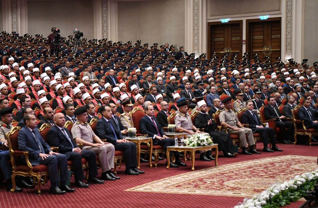 وقال الرئيس السيسى، في كلمته، “إننا نحتفل اليوم بتخريج كوكبة جديدة من الأئمة الذين سوف يحملون على عاتقهم أمانة الكلمة، ونشر نور الهداية، وترسيخ قيم الرحمة والتسامح والوعى”، مشيرا إلى أنه قد وجه وزارة الأوقاف، بالتعاون مع مؤسسات الدولة الوطنية، وعلى رأسها الأكاديمية العسكرية المصرية، بوضع برنامج تدريبي متكامل يُعنى بصقل مهارات الأئمة علميًا وثقافيًا وسلوكيًا، بهدف الارتقاء بمستوى الأداء الدعوي، وتعزيز أدوات التواصل مع المجتمع، ليكون الإمام نبراساً للوعي، متمكناً من البيان، بارعاً في الإقناع، أمينًا في النقل، حاضرًا بوعيٍ نافذ وإدراكٍ عميق لمختلف القضايا الفكرية والتحديات الراهنة.
