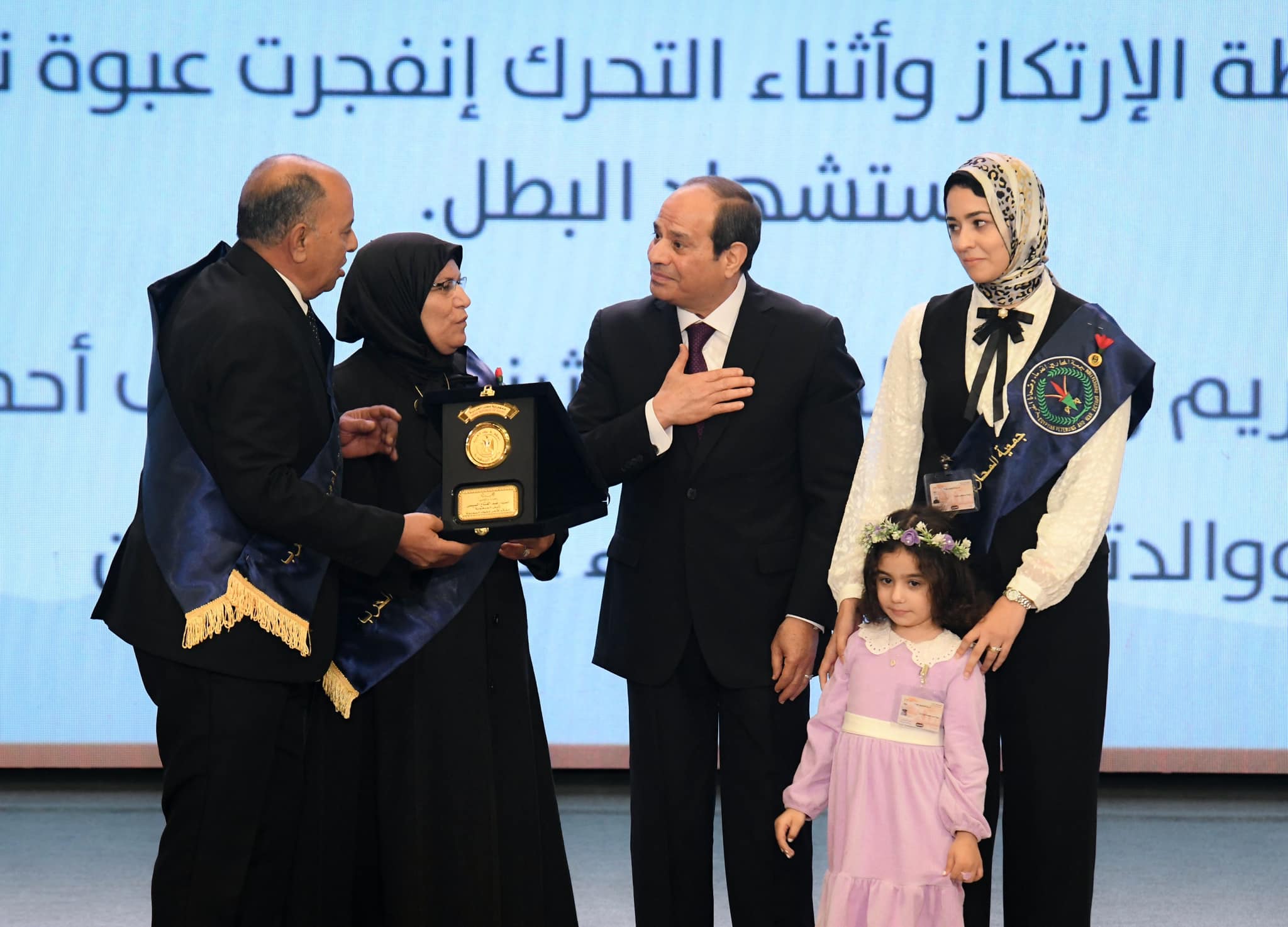 كرّم الرئيس عبد الفتاح السيسي، اليوم الخميس، أسر شهداء ومصابي العمليات من القوات المسلحة خلال الاحتفال بـ”يوم الشهيد” في الندوة التثقيفية الـ37 للقوات المسلحة بمركز المنارة للمؤتمرات بالقاهرة الجديدة .