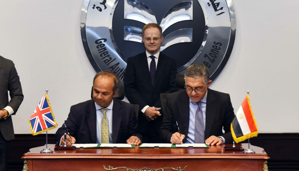 وقع السيد/ حسام هيبة، الرئيس التنفيذي للهيئة العامة للاستثمار والمناطق الحرة، والسيد/ تيم ريد، رئيس هيئة ضمان اعتمادات التصدير التابعة للخارجية البريطانية، مذكرة تفاهم لتعزيز العلاقات الاستثمارية والتجارية الثنائية بين البلدين، بحضور السيد/ جاريث بايلي، السفير البريطاني لدى مصر، والدكتورة داليا الهواري، نائب الرئيس التنفيذي للهيئة العامة للاستثمار والمناطق الحرة.