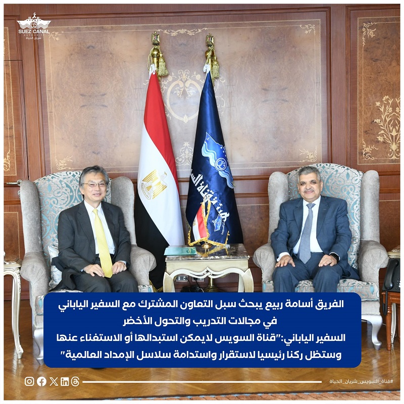 الفريق أسامة ربيع يبحث وسفير اليابان التعاون في مجالات التدريب والتحول الأخضر