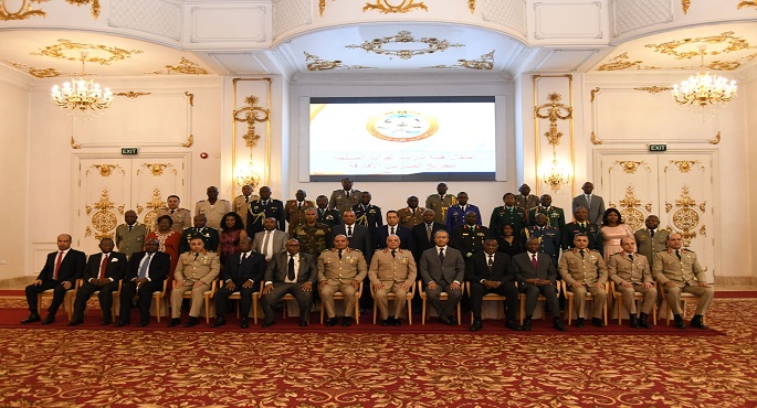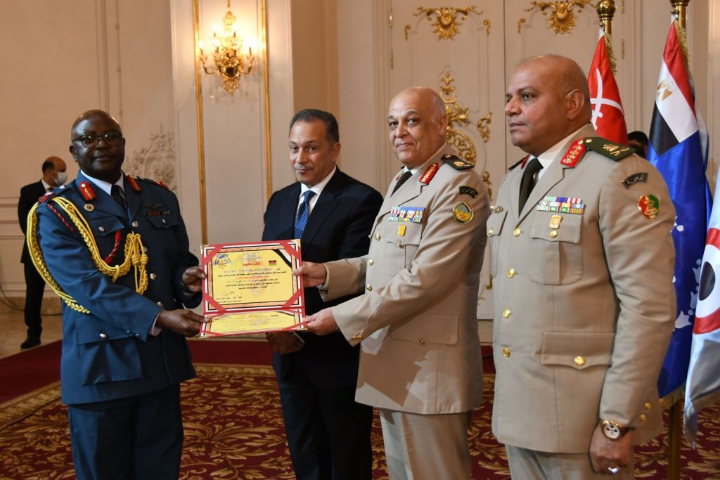 وفى نهاية الحفل تم توزيع شهادات التخرج على الدارسين وعزف السلام الوطني، بحضور عدد من قادة القوات المسلحة وعدد من السفراء والملحقين العسكريين للدول الإفريقية.