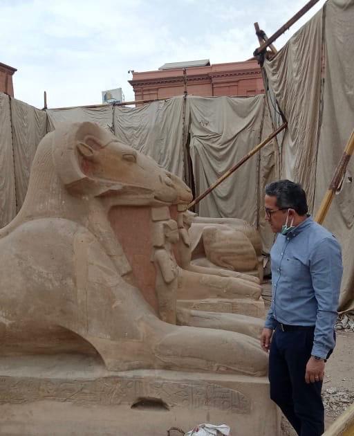 تفقد الدكتور خالد العناني وزير السياحة والآثار، ظهر أمس الاثنين ، أعمال ترميم الكباش الأربعة تمهيدا لنقلها قريبا إلى الأماكن المخصصة لها لتزين ميدان التحرير بوسط القاهرة بجانب مسلة الملك رمسيس الثاني، والتي تم ترميمها وإقامتها بالميدان. رافقه خلال الجولة الدكتور مصطفى وزيري الأمين العام للمجلس الأعلى للآثار.