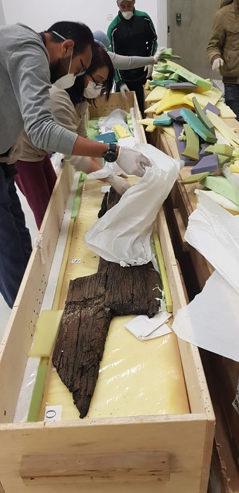بالصور .. المتحف المصرى الكبير يستقبل ٤٢ قطعة خشبية من مركب خوفو الثانية